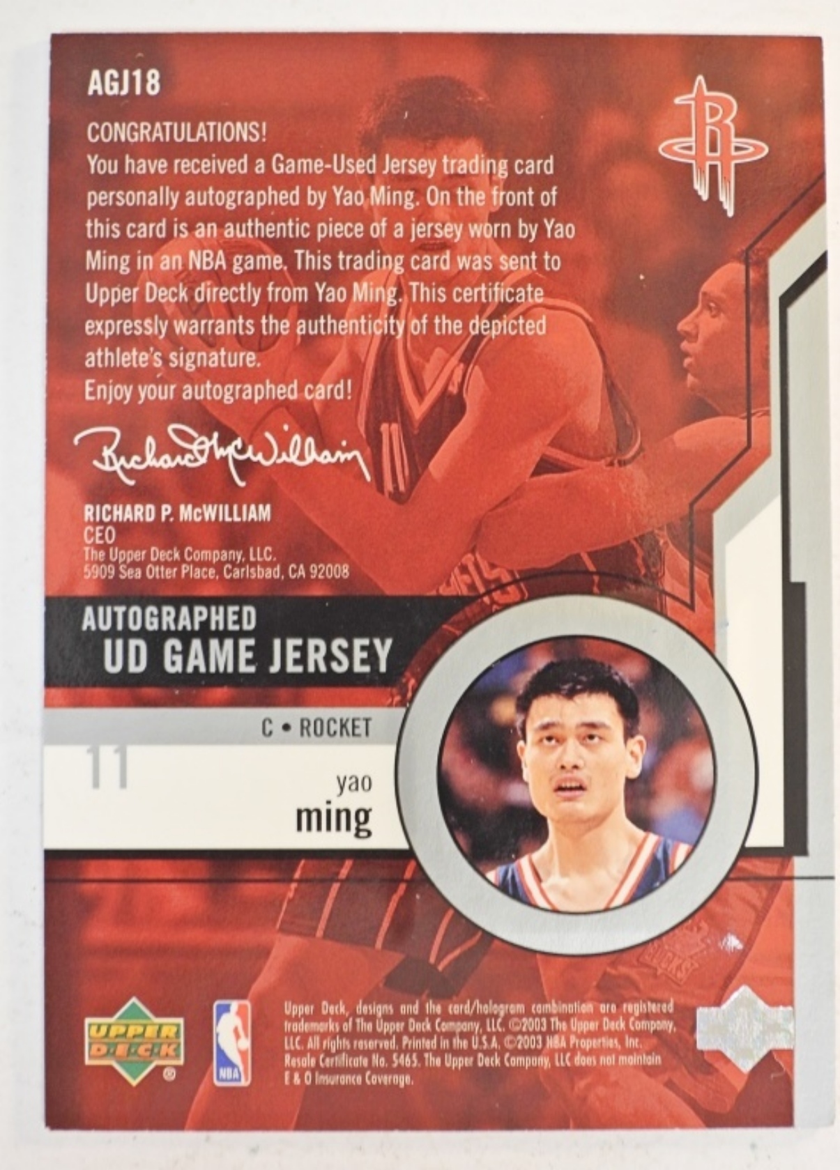 UPPERDECK AUTOGRAPHED UD GAME JERSEY, YAO MING. NUMBERED 57/100