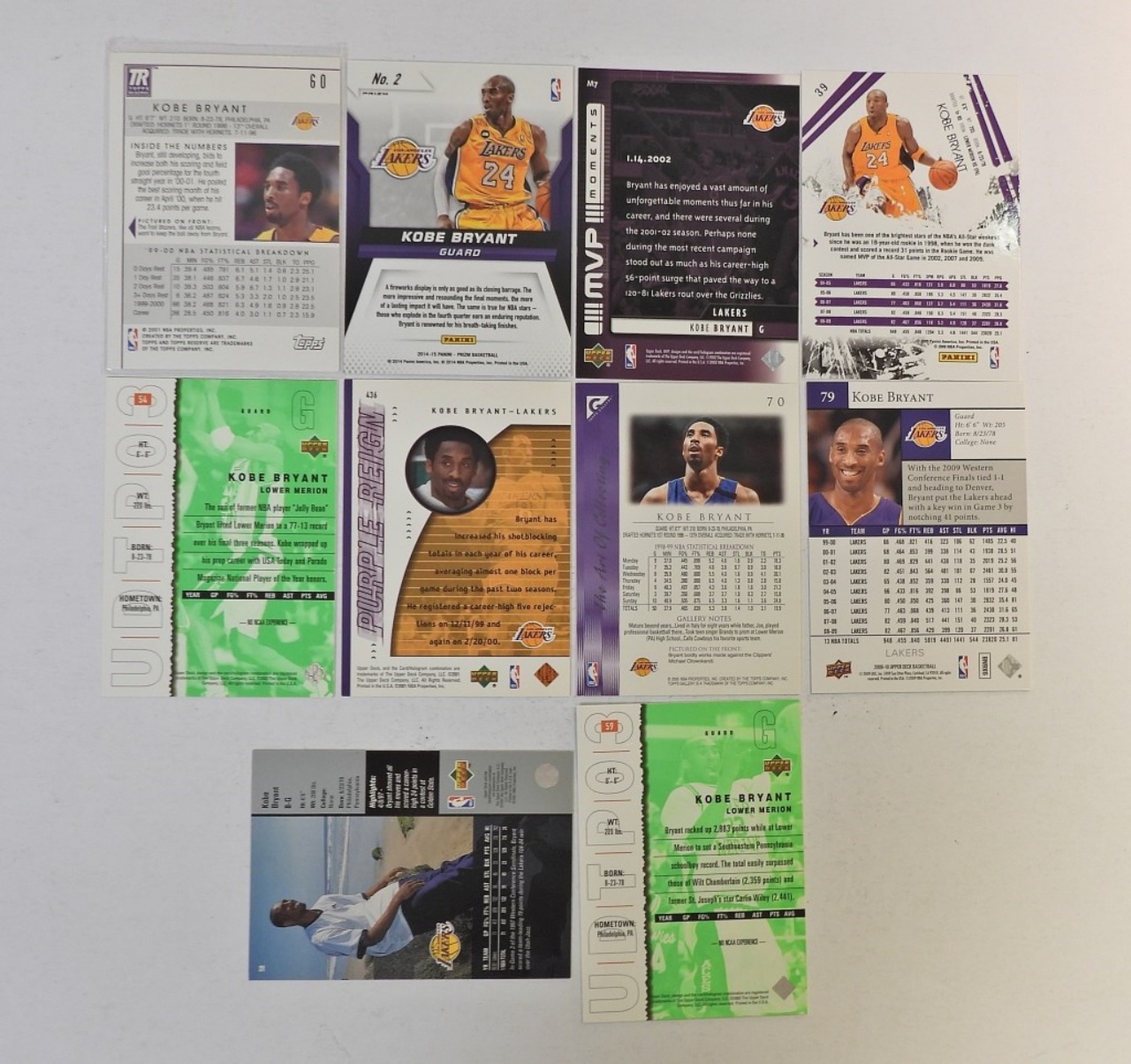TEN KOBE BRYANT PREMIUM BASKETBALL CARDS-NICE CONDITION. ALL DIFFERENT CARDS.
