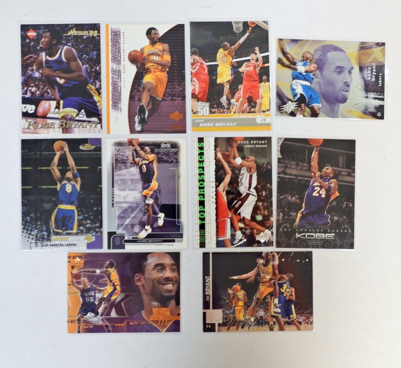 TEN KOBE BRYANT PREMIUM BASKETBALL CARDS. ALL IN NICE CONDITION-ALL DIFFERENT.