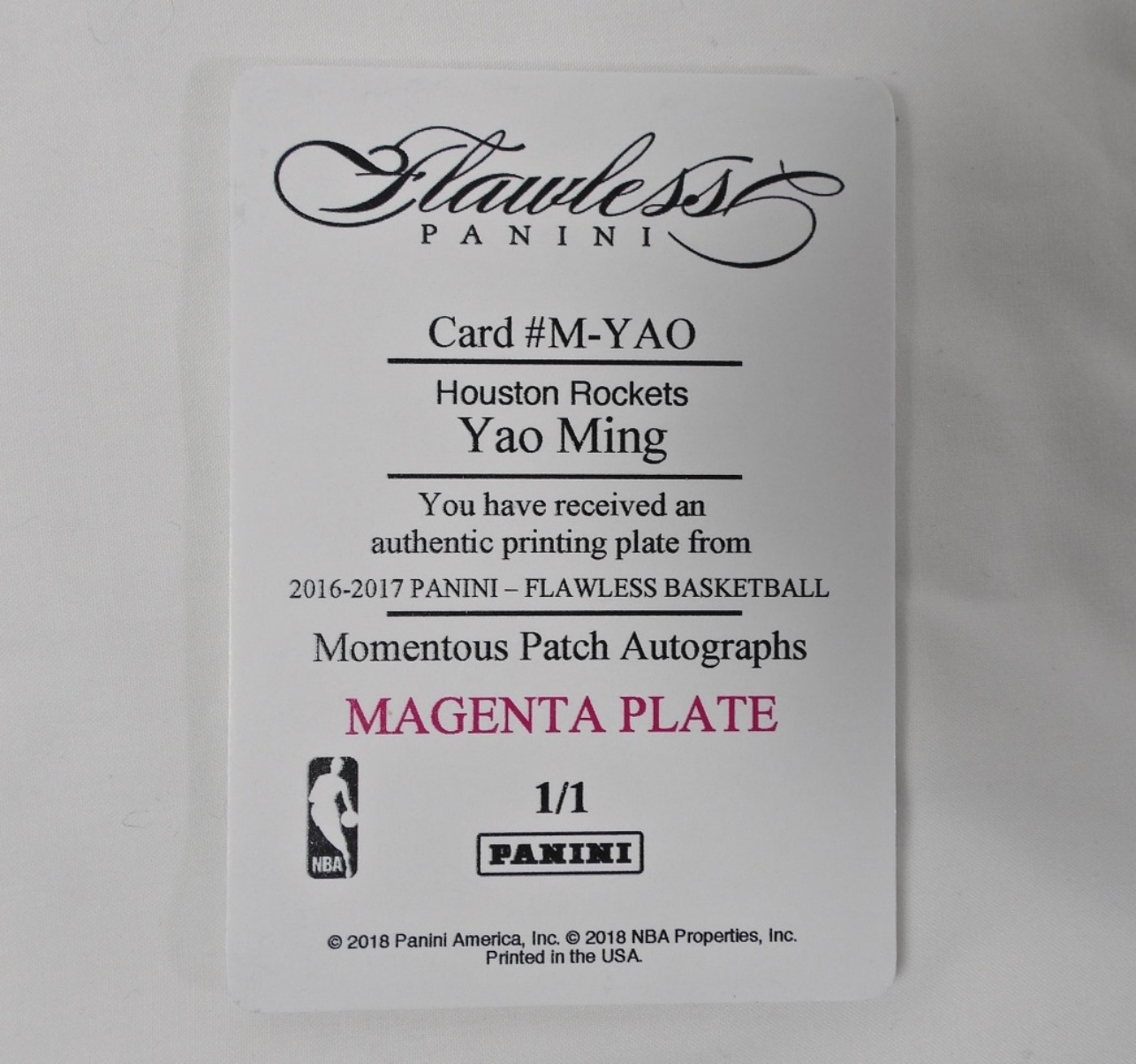 PANINI PRINTING PLATE FROM 2016-17 FLAWLESS BASKETBALL CARD# M-YAO, MAGENTA 1/1