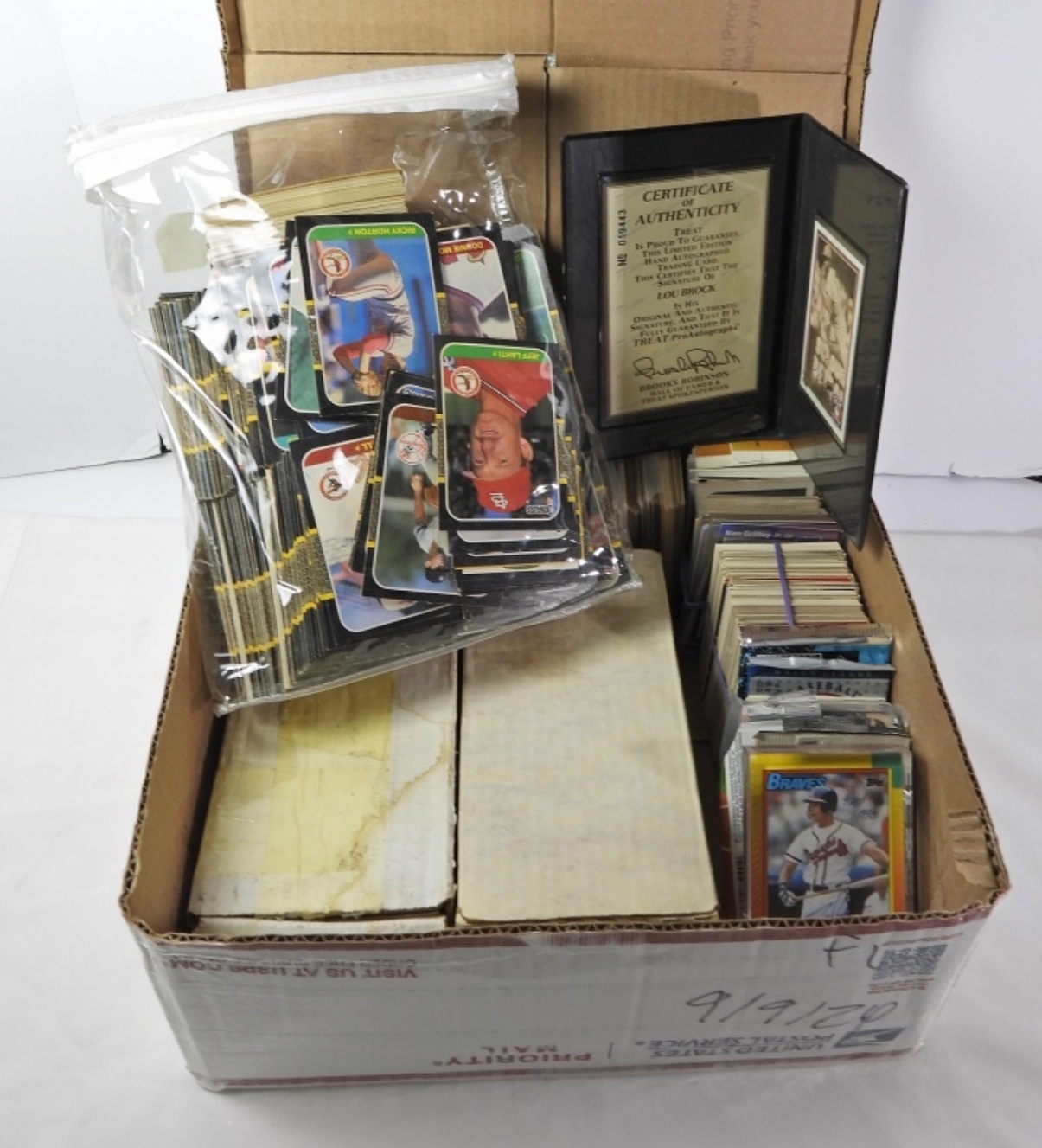 DAVE JUSTICE AUTO CARD, 1993 DONRUSS SER 1 SET, 1988 TOPPS 400 CARDS, 1987 DONRUSS LOT, OVER 400 SINGLE CARDS – UNSEARCHED