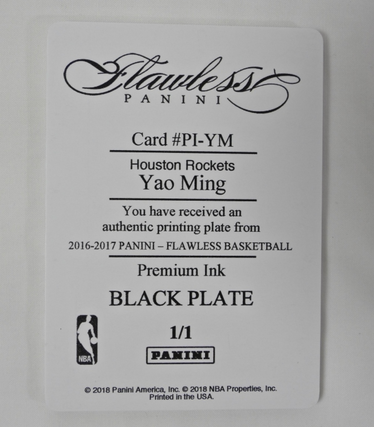 PANINI CARD # PI-YM YAO MING, 2016-17. PREMIUM INK BLACK PLATE 1/1.