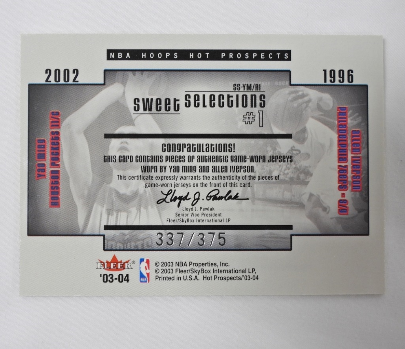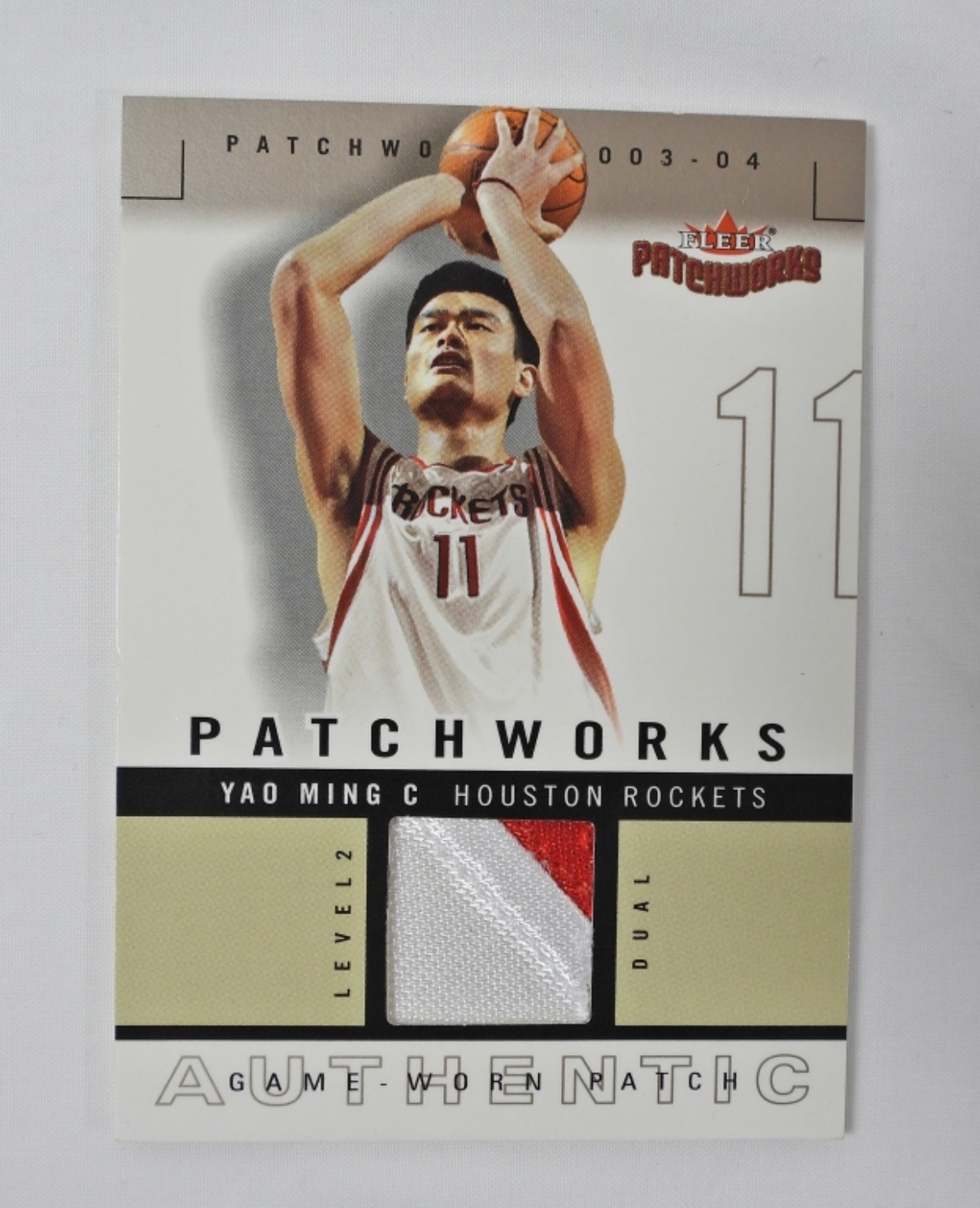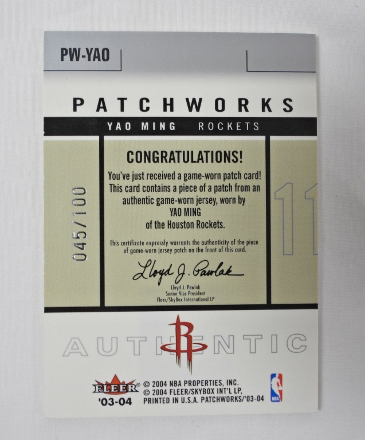 (2) YAO MING JERSEY PATCH CARDS. LTD# 45/100 & 337/375. FLEER YAO MING ROOKIE CARD & SKY’S THE LIMITED YAO MING CARD.