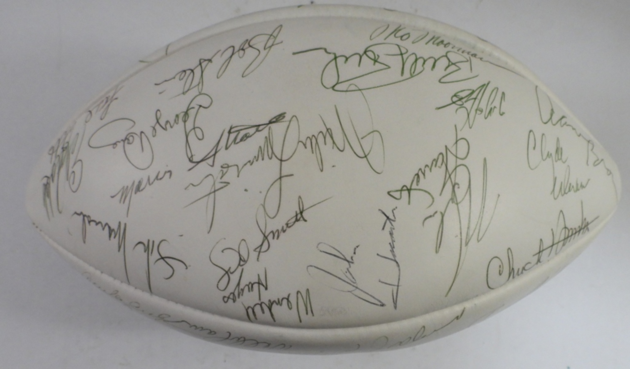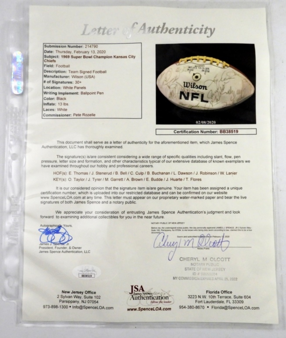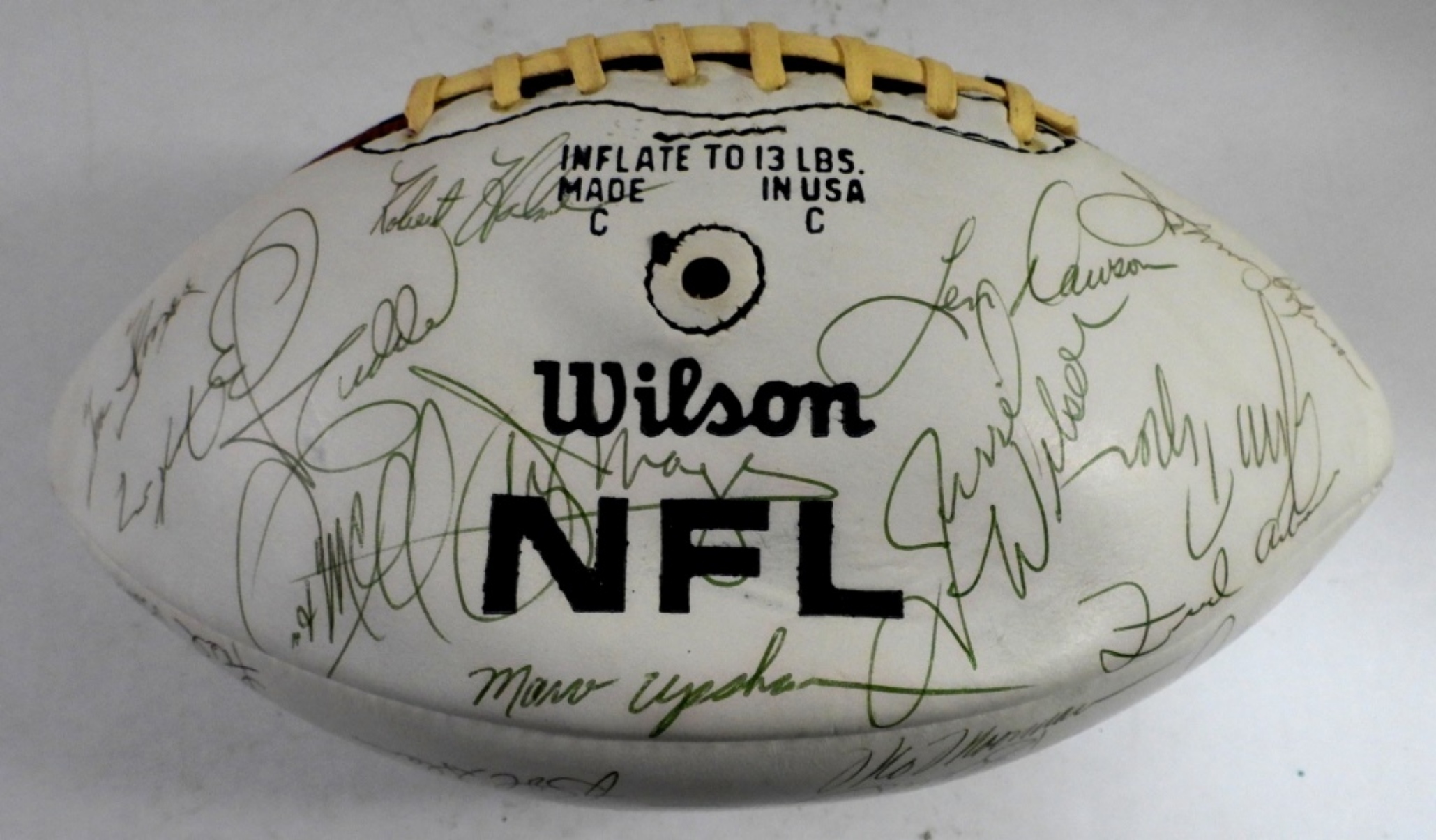 JSA CERTIFIED – 30+ SIGNATURES – (HOFers) E. THOMAS / J. STENERUD / B.ELL / C. CULP / B. BUCHANAN / L. DAWSON / J. ROBINSON / W. LANIER; (KEYs) O. TAYLOR / J. TYRER / M. GARRETT / A. BROWN / E. BUDDE / J. HUARTE /
