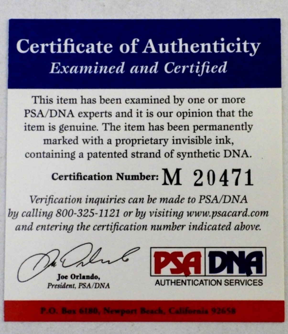 8×10 with PSA/DNA STICKER & PAPER COA