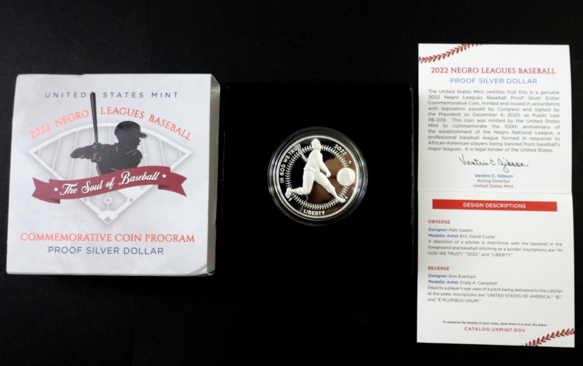 2022 NEGRO LEAGUES BASEBALL COMMEMORATIVE COIN PROGRAM PROOF SILVER DOLLAR UNITED STATES MINT .999 SILVER