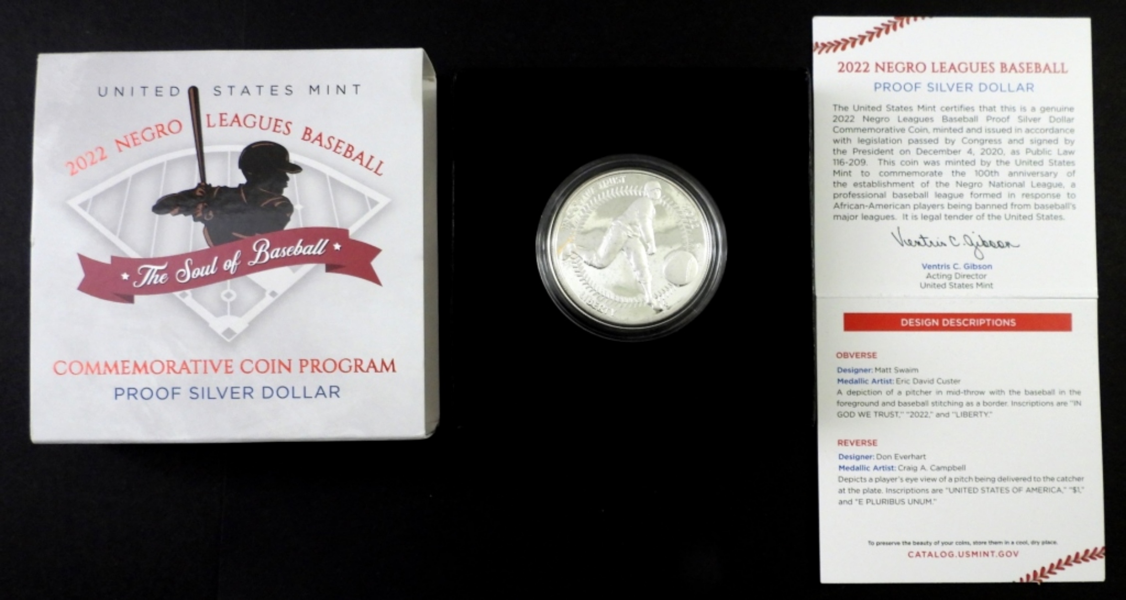 2022 NEGRO LEAGUES BASEBALL COMMEMORATIVE COIN PROGRAM PROOF SILVER DOLLAR UNITED STATES MINT .999 SILVER