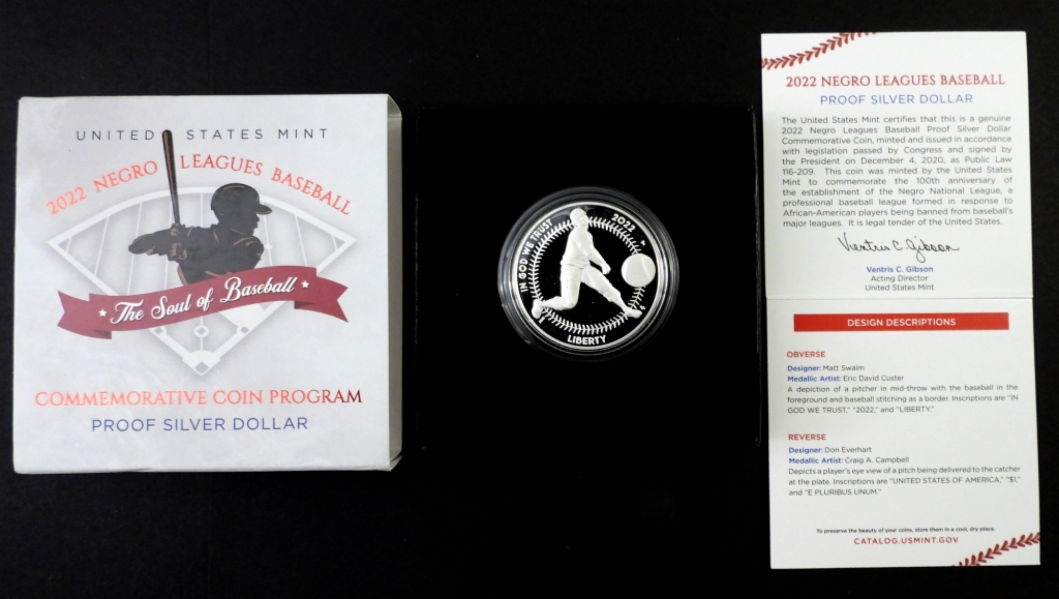 2022 NEGRO LEAGUES BASEBALL COMMEMORATIVE COIN PROGRAM PROOF SILVER DOLLAR UNITED STATES MINT .999 SILVER