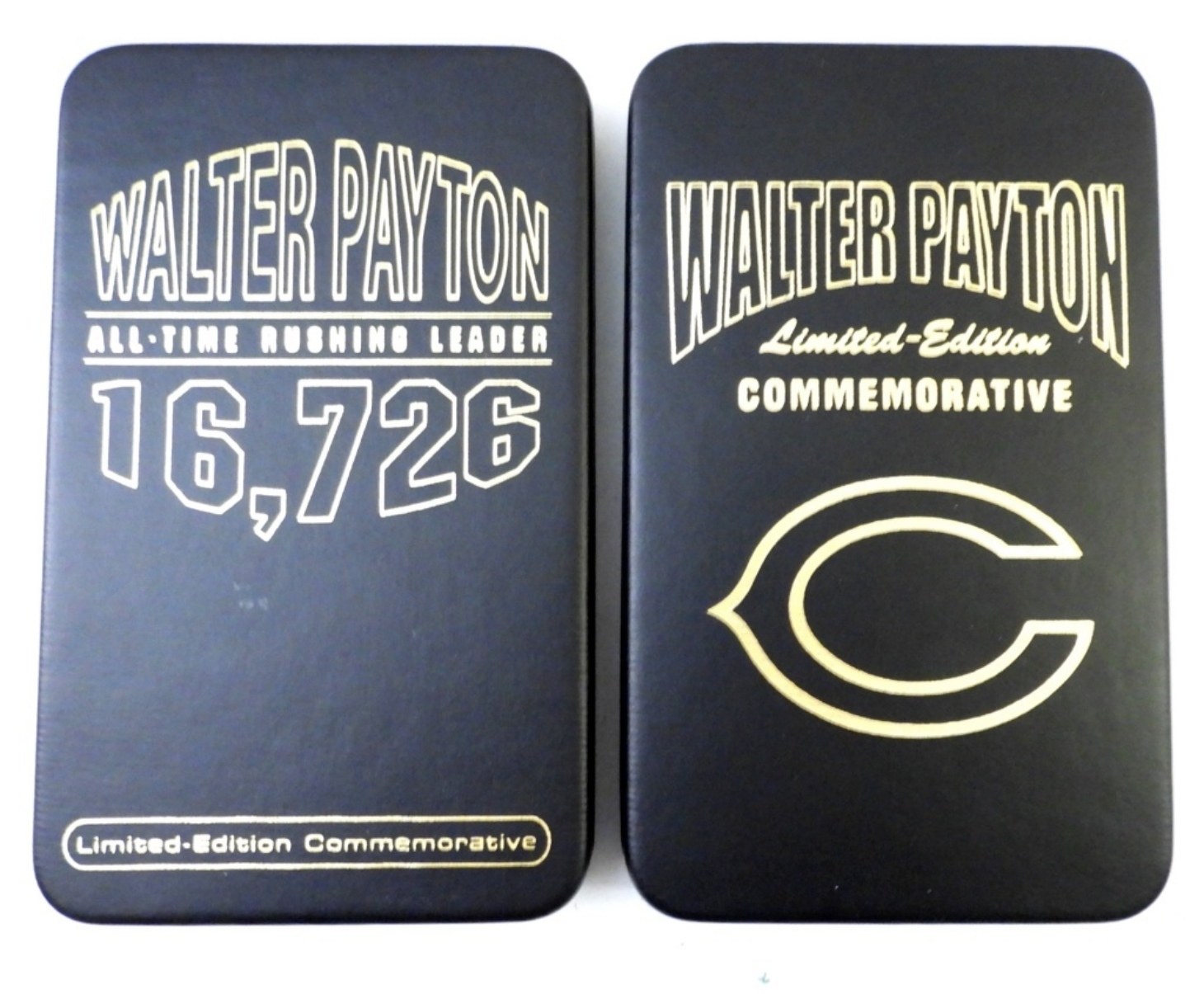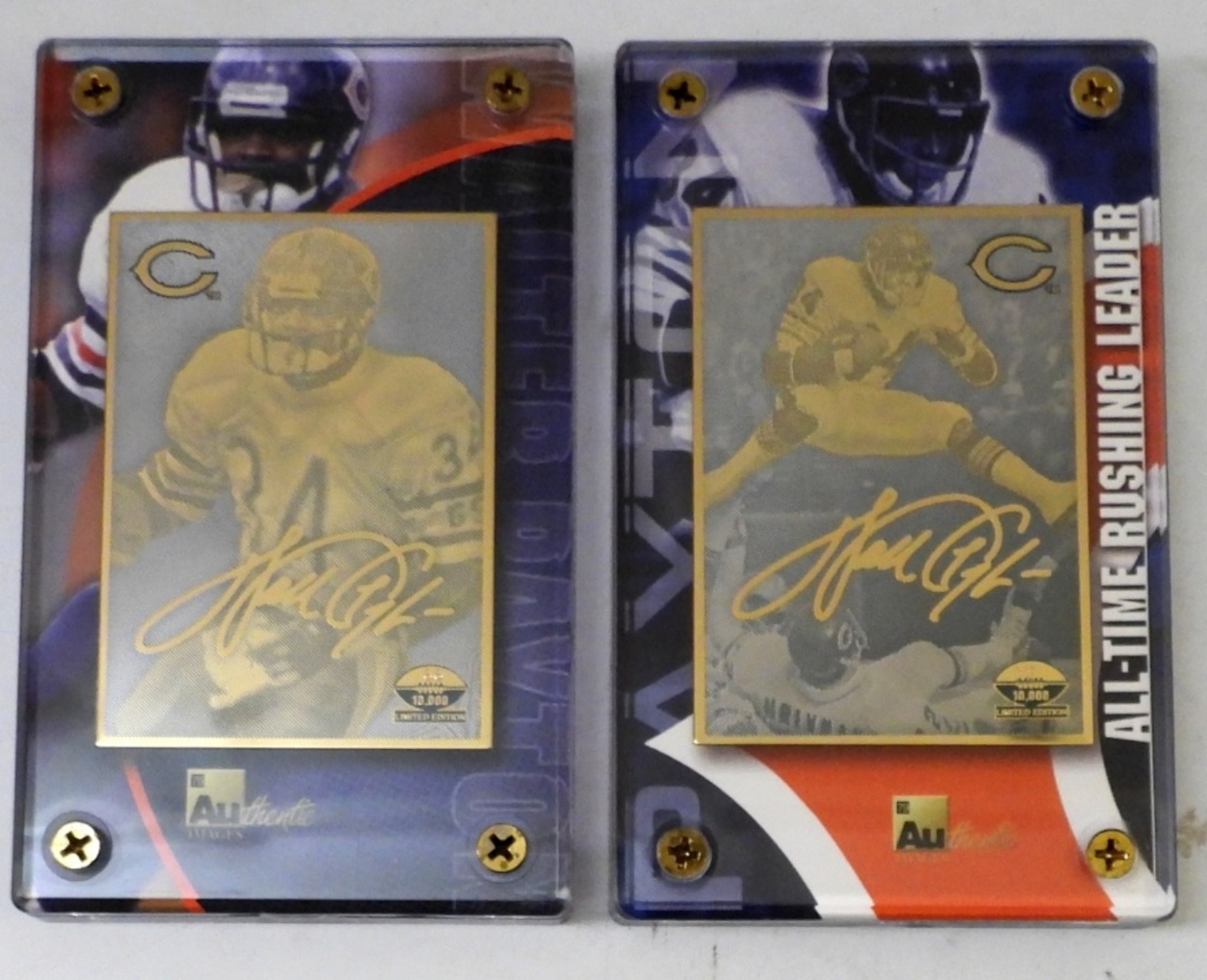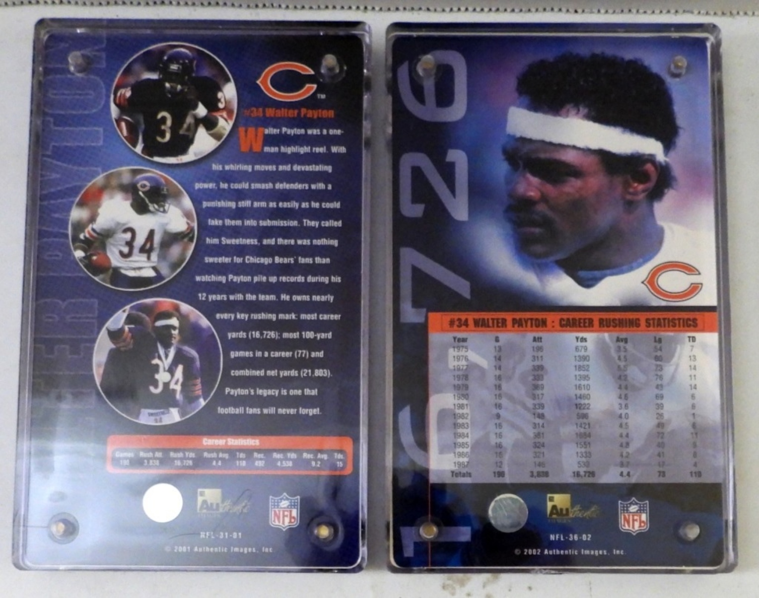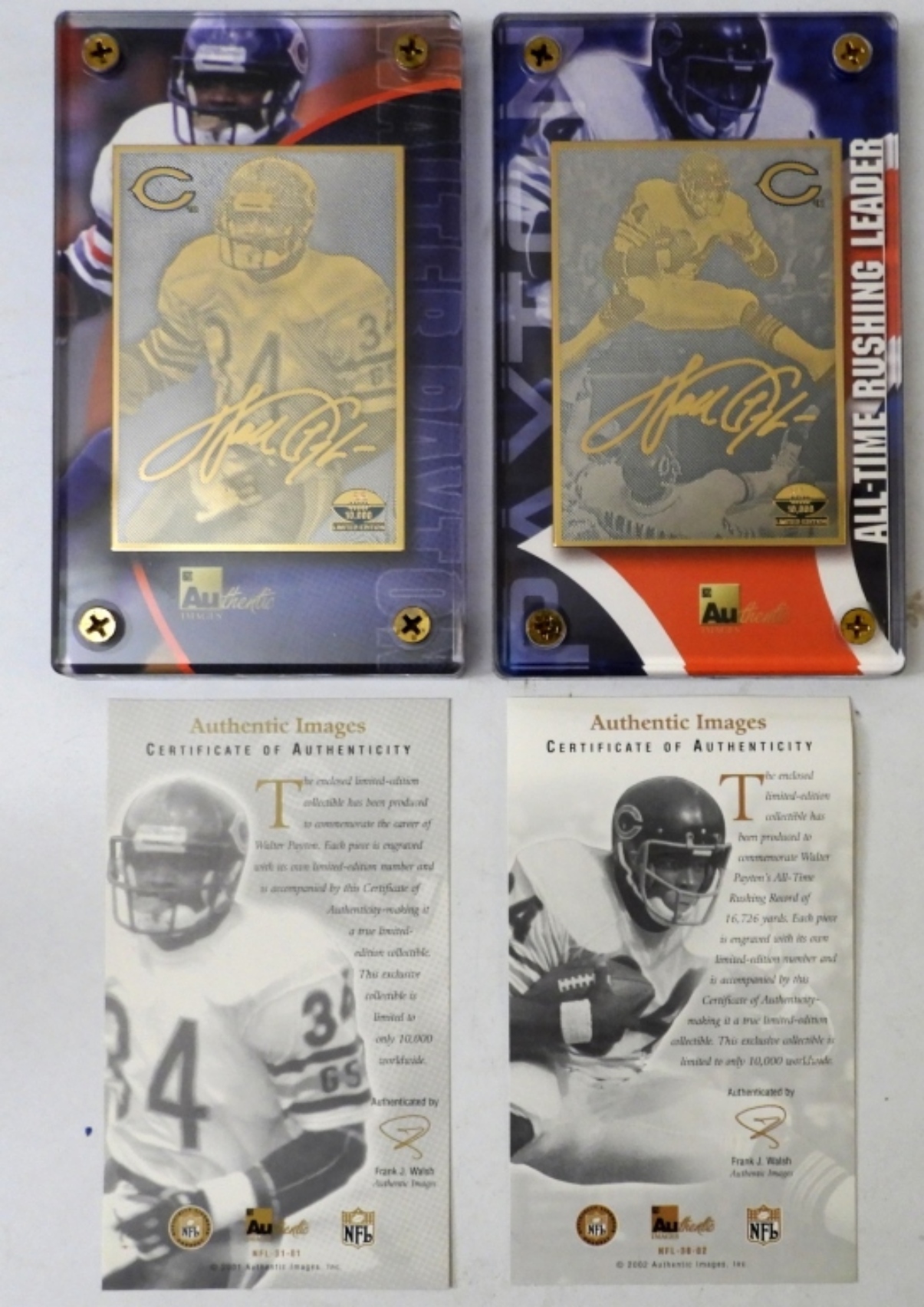 2 WALTER PAYTON COMMEMORATIVE CARDS, INCLUDING HIS ALL TIME RUSHING LEADER CARD BY AUTHENTIC IMAGES