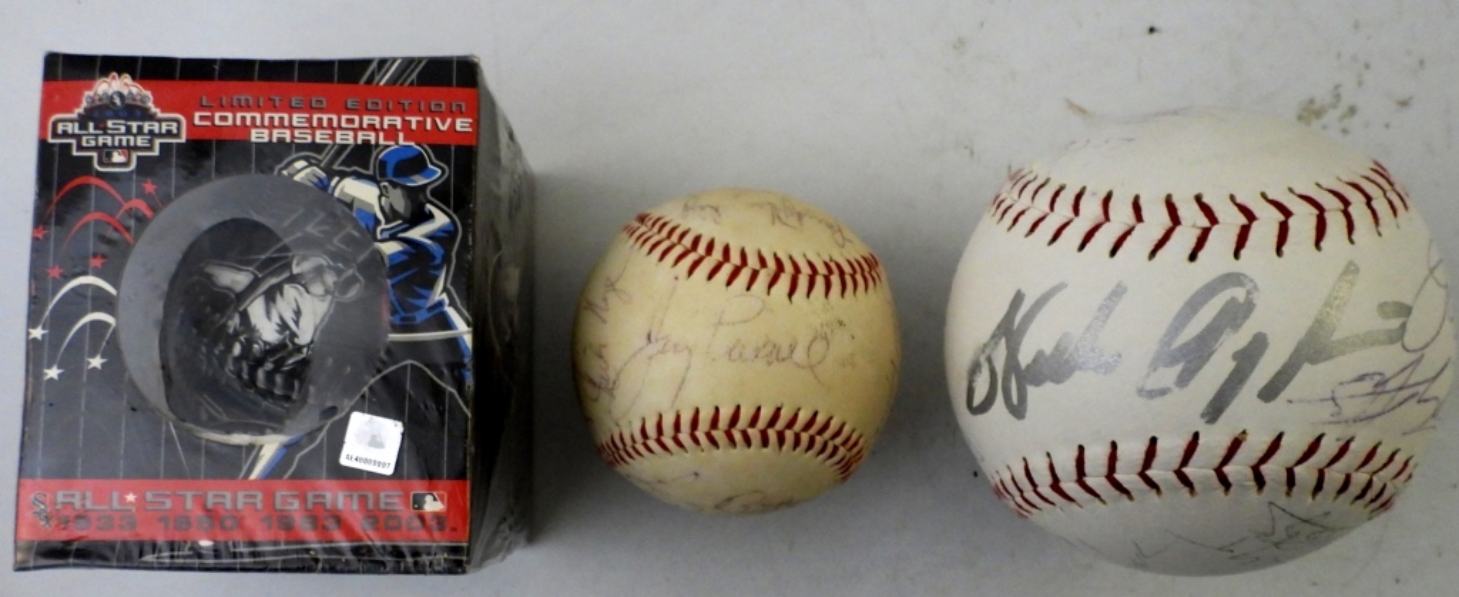 UNOPENED LIMITED EDITION ALL STAR GAME COMMEM BASEBALL, (1) SOFTBALL UNKNOWN SIGNATURES, (1) BASEBALL UNKNOWN SIGNATURE