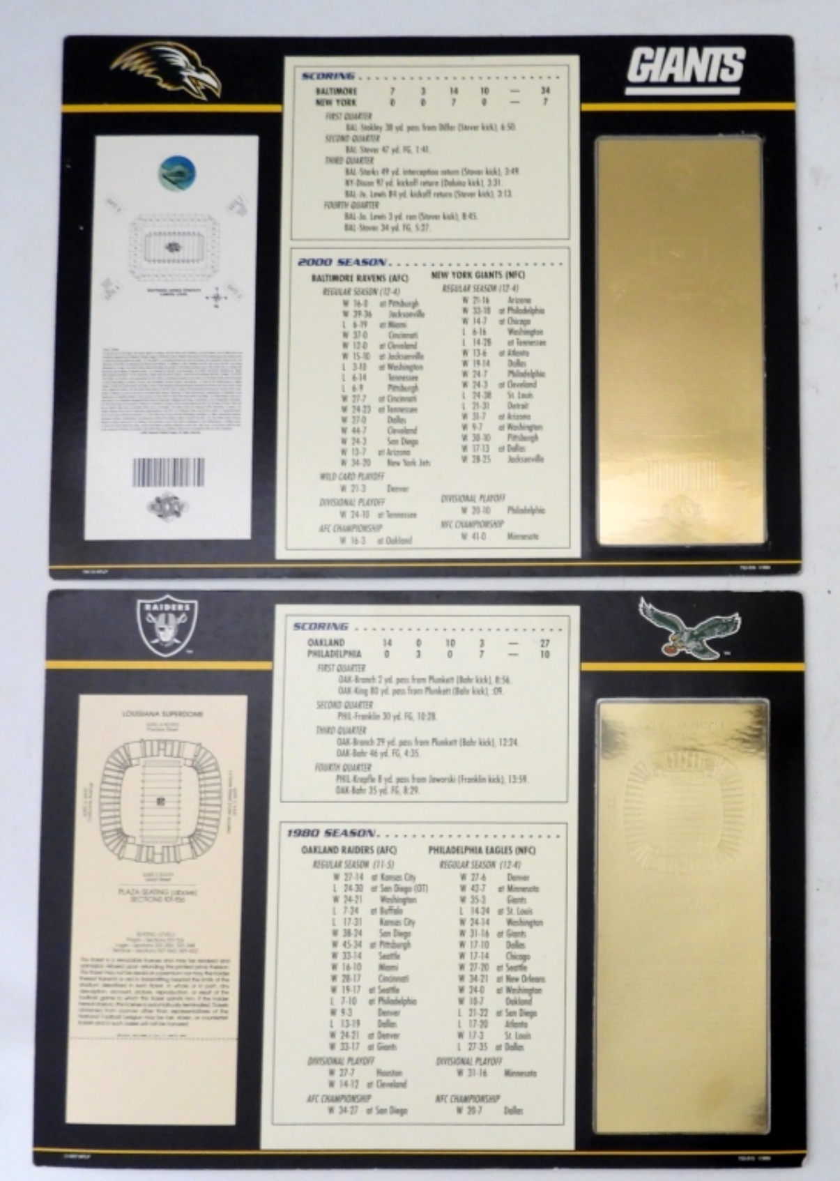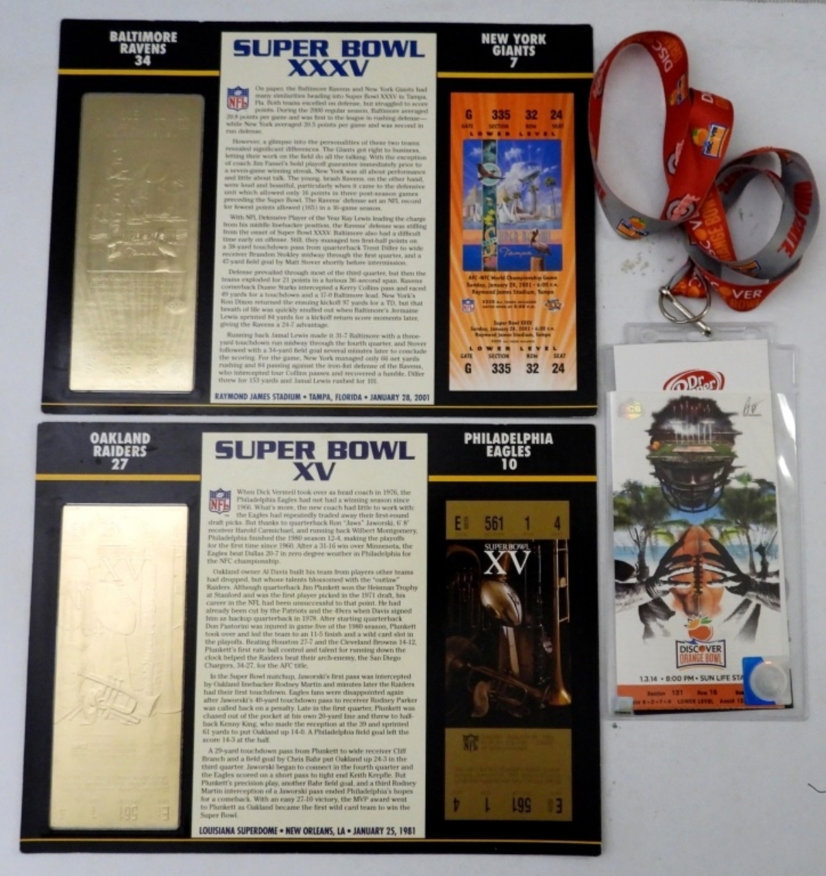 SUPER BOWL 15 GOLD PLATED TICKET SUPER BOWL 35 GOLD PLATED TICKET OHIO STATE ORANGE BOWL 2014 TICKET
