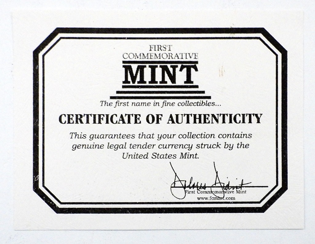 (5) FIRST DAY OF ISSUE CLAD QUARTERS IN WOODEN DISPLAY CASE W/ COA. HOT SPRINGS, YELLOWSTONE, YOSEMITE, GRAND CANYON, & MT. HOOD.