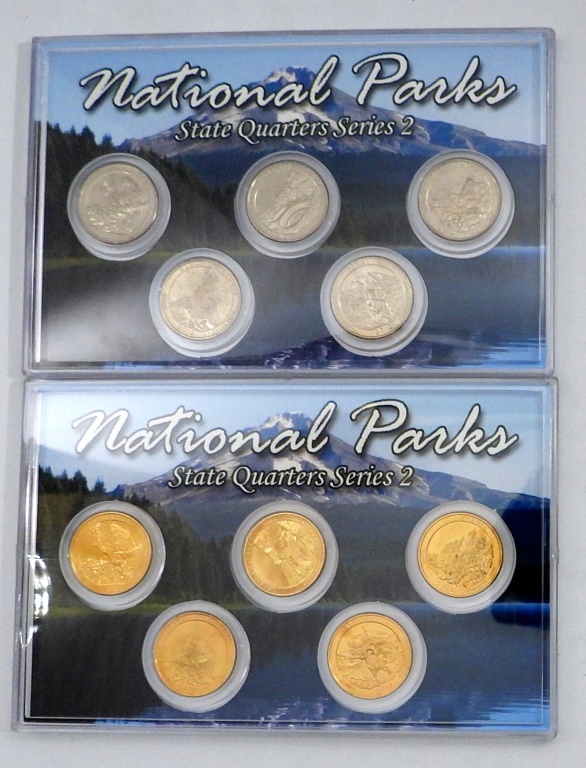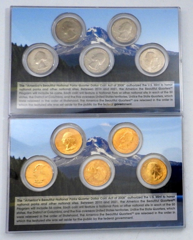 SAN FRANCISCO MINT UNCIRCULATED & 24K GOLD CLAD AMERICA’S NATIONAL PARKS 10-COIN QUARTER SET. IN BOX. NO COA