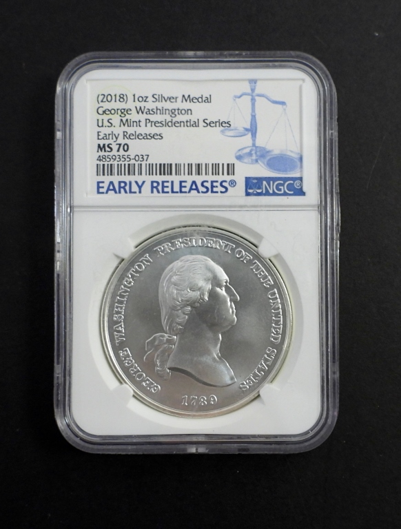 EARLY RELEASES, GEORGE WASHINGTON 1oz SILVER MEDAL, U.S. MINT PRESIDENTIAL SEREIES.