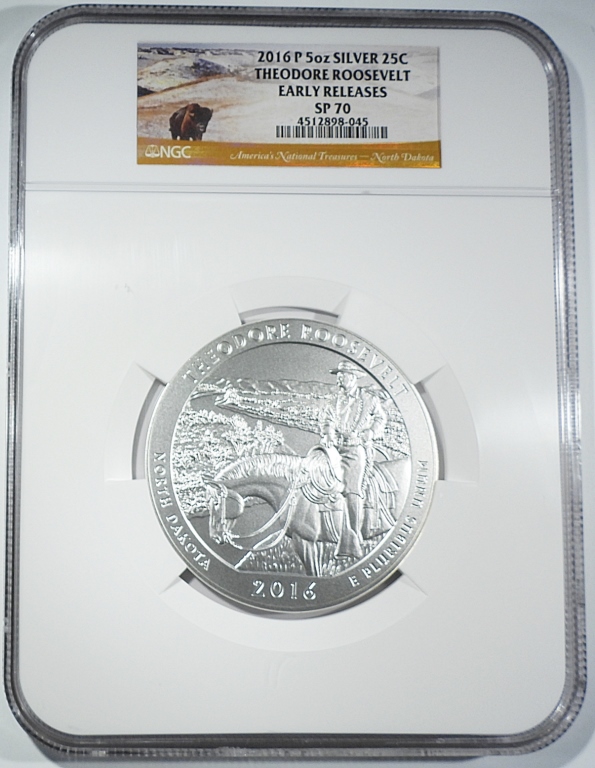 NORTH DAKOTA. EARLY RELEASES. ATB 5oz .999 SILVER QUARTER
