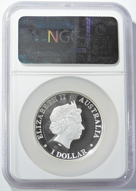 HIGH RELIEF 1oz .999 SILVER AUSTRALIA $1 JOHN MERCANTI SIGNED.