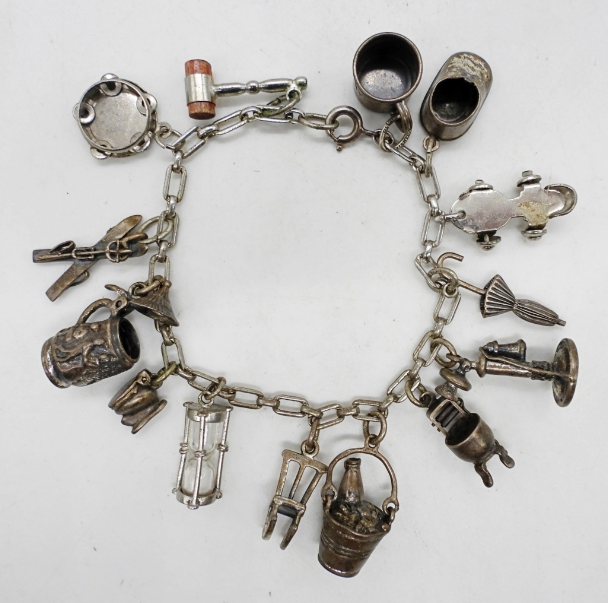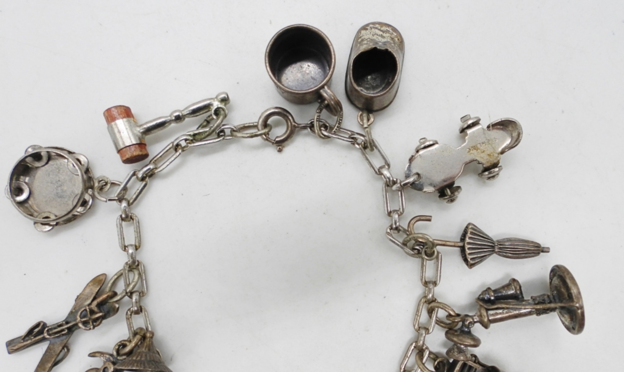 22DWT, 14 CHARMS ON THIS BRACELET, ALL MARKED STERLING