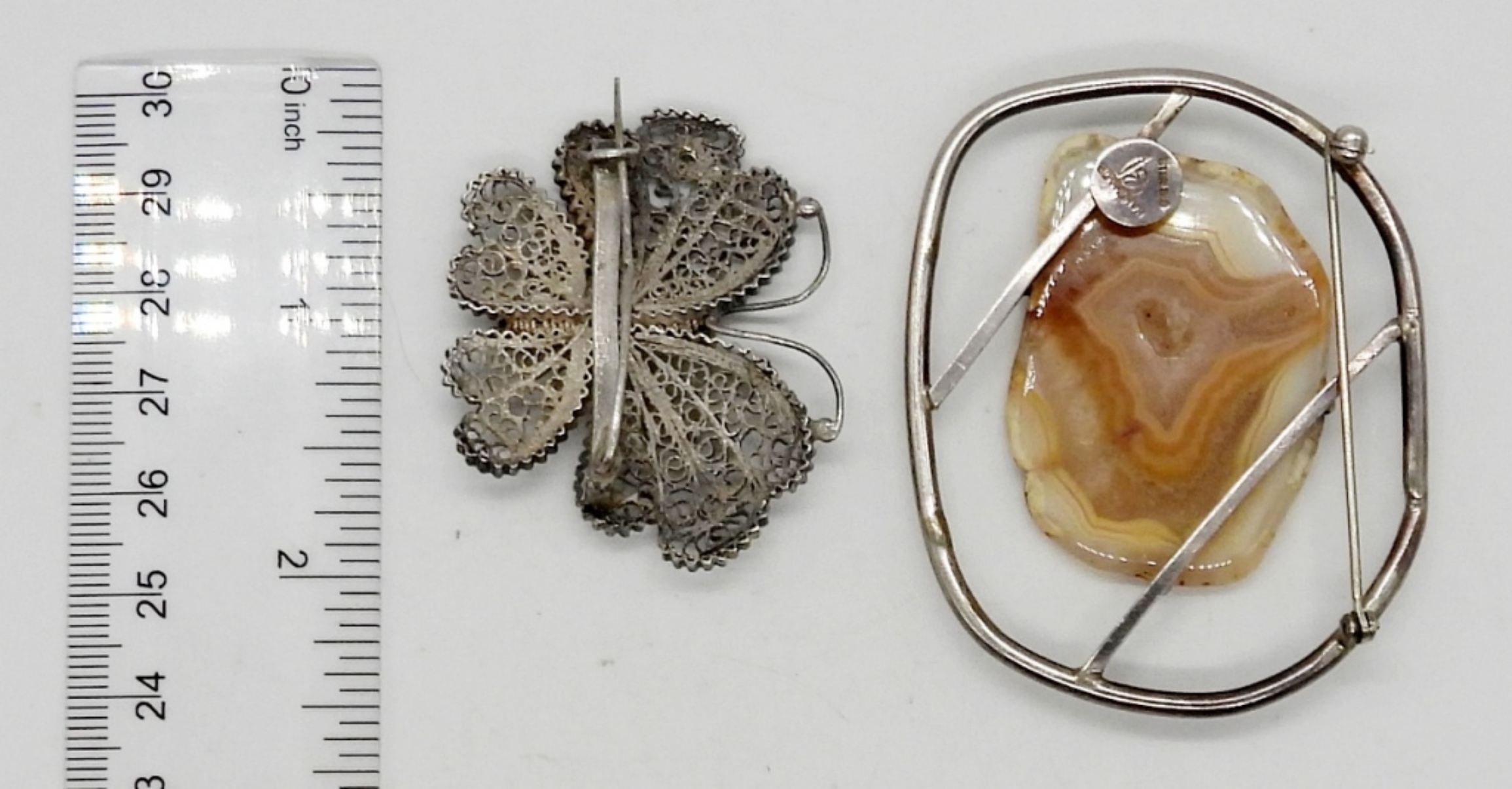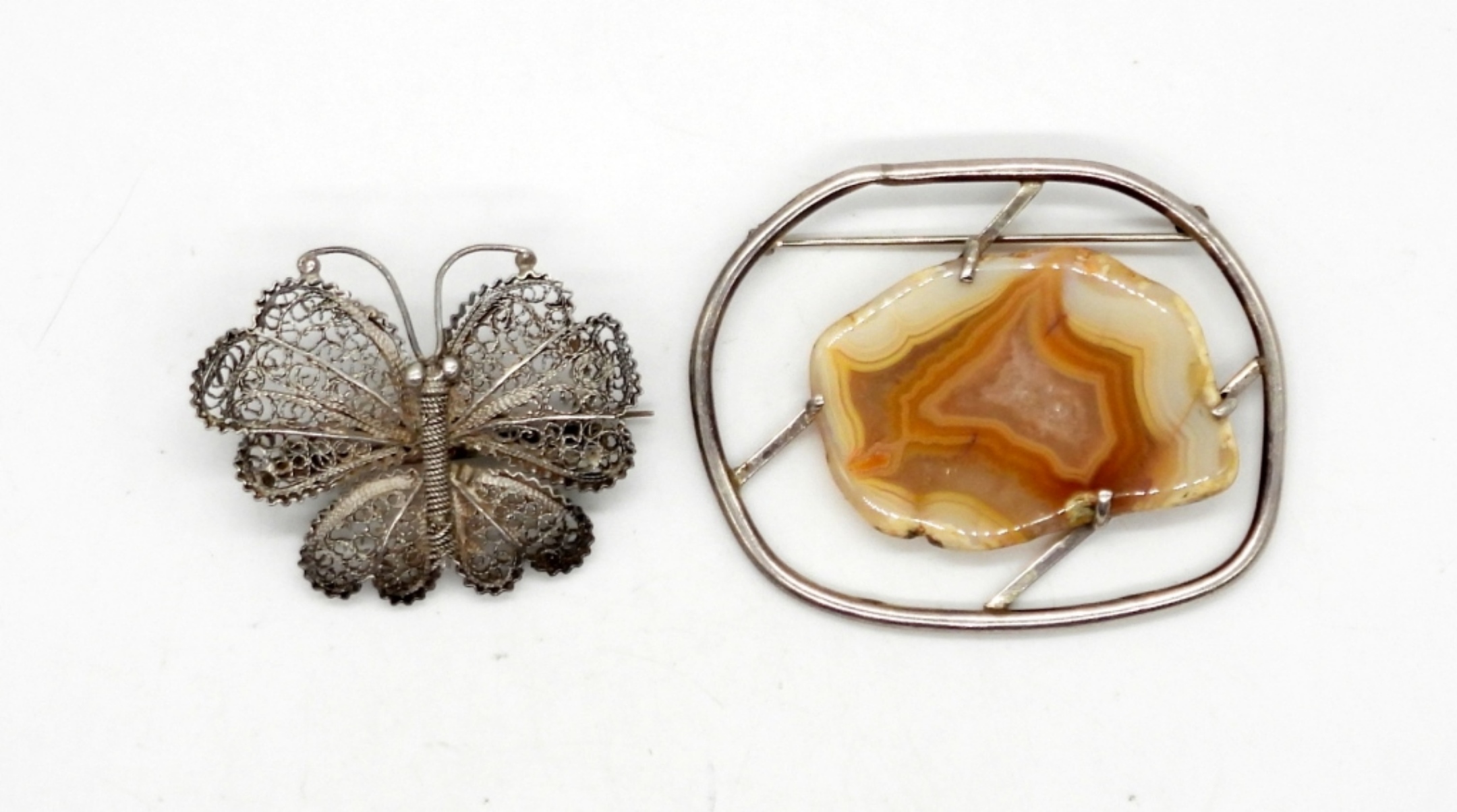 BUTTERFLY & LARGE SMOOTH NATURAL CENTER STONE – 21.6 DWT – STAMPED STERLING