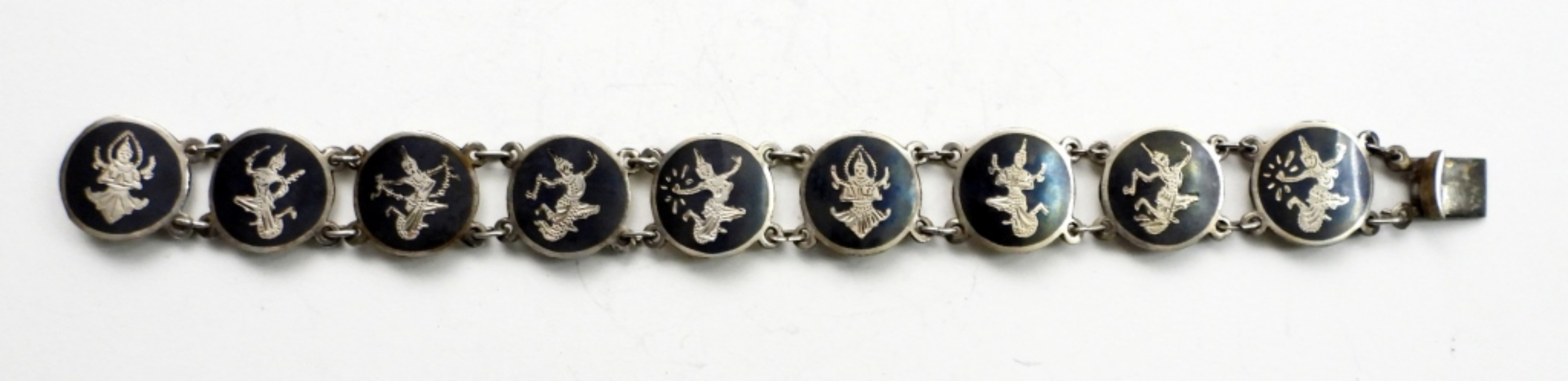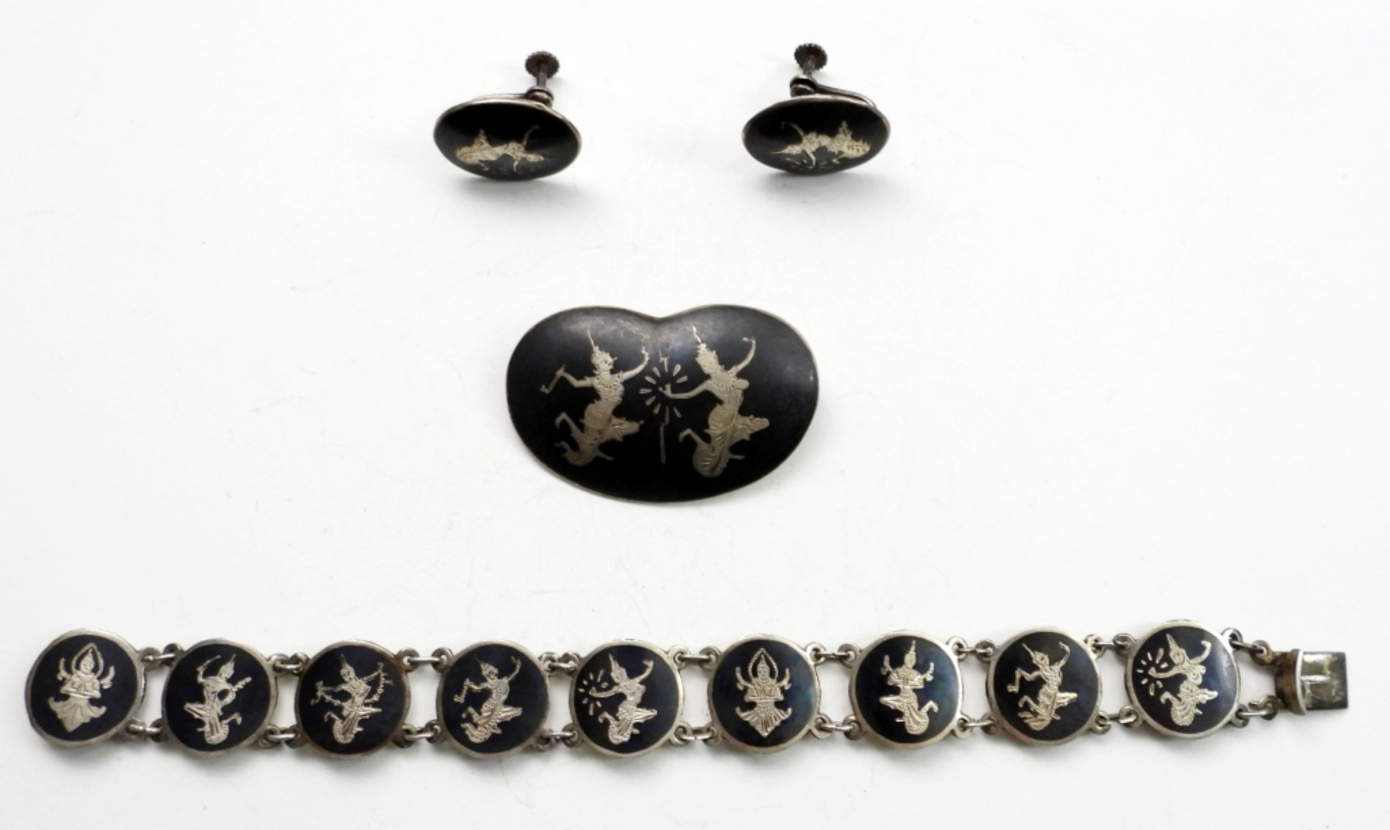 Vintage Siam Sterling-Black. Bracelet 7.5″. Screw Back Earrings and a Pendant. 23.7 DWT