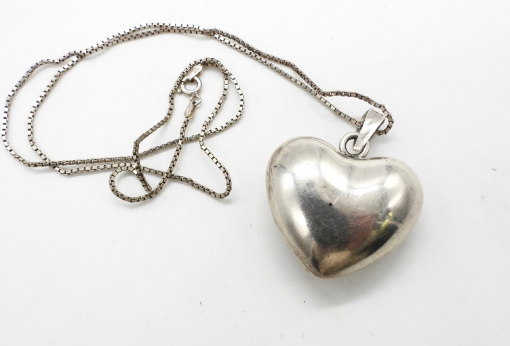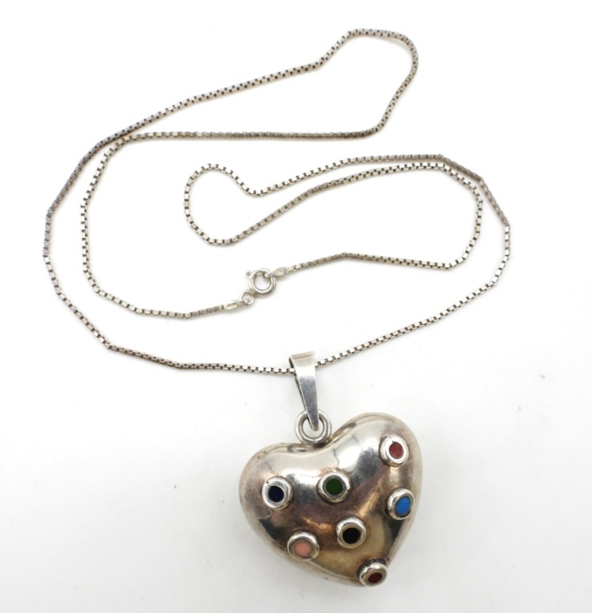 STERLING HEART HARMONY PENDANT, HEART IS 1.5″x1.5″ WITH A 24″ STERLING CHAIN. 21.7 DWT