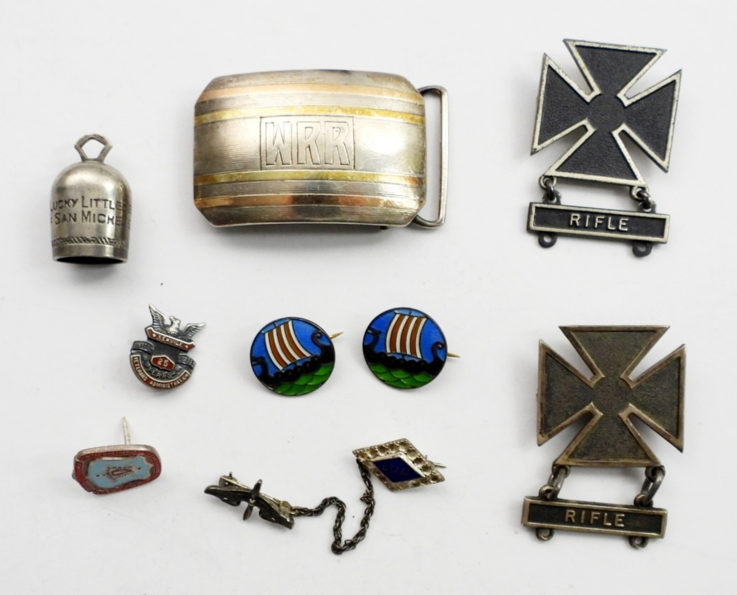 STRAIGHT FROM GRANDPAs JEWELRY BOX – BUCKLE, BELL, MILITARY MEDALS & MORE (36 DWT)