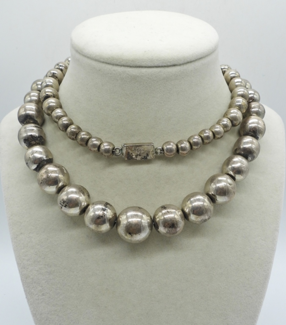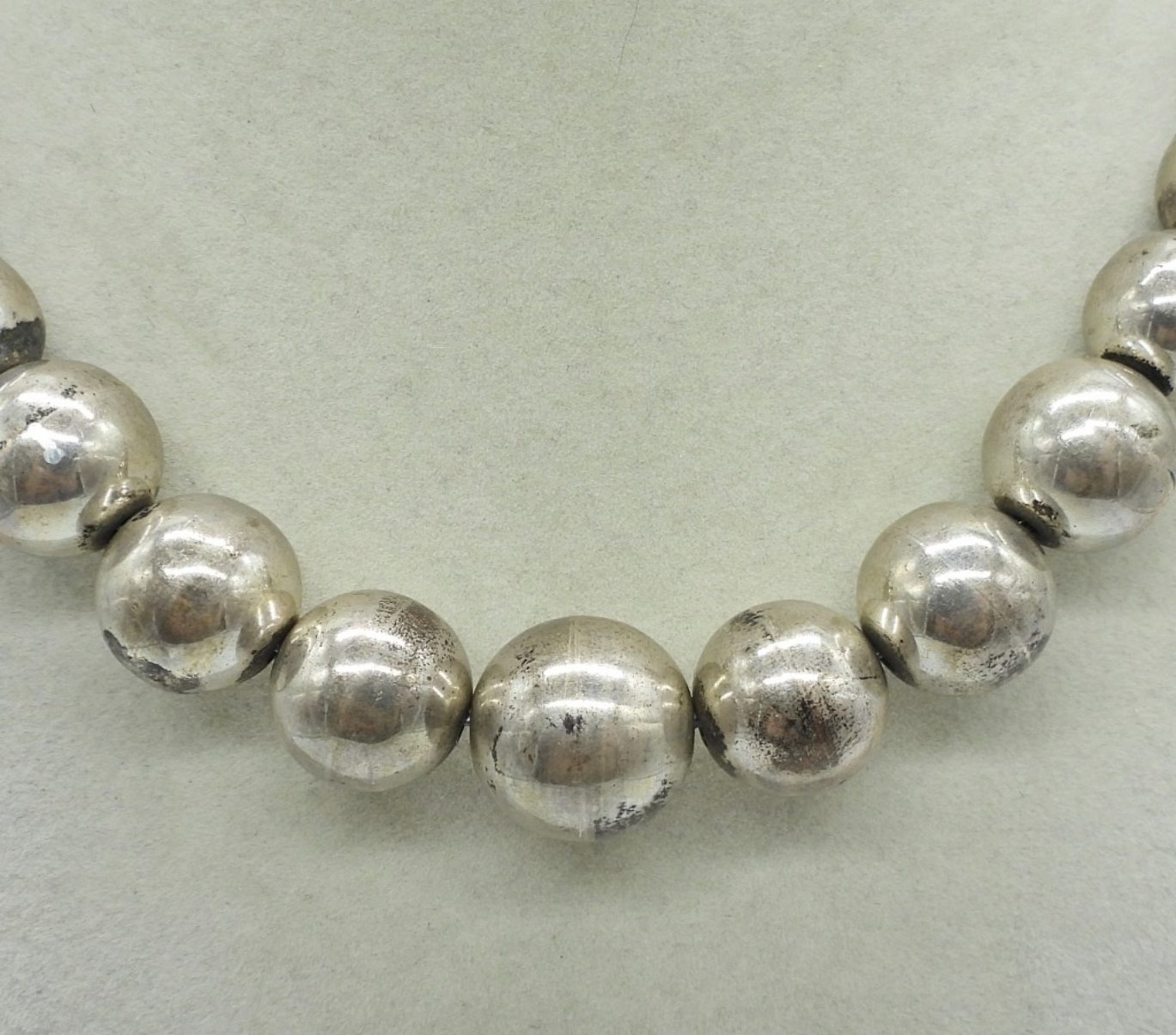 VINTAGE STERLING BEADED NECKLACE, THICK AND CHUNKY. MEXICO 925. 29″LONG. 75 DWT