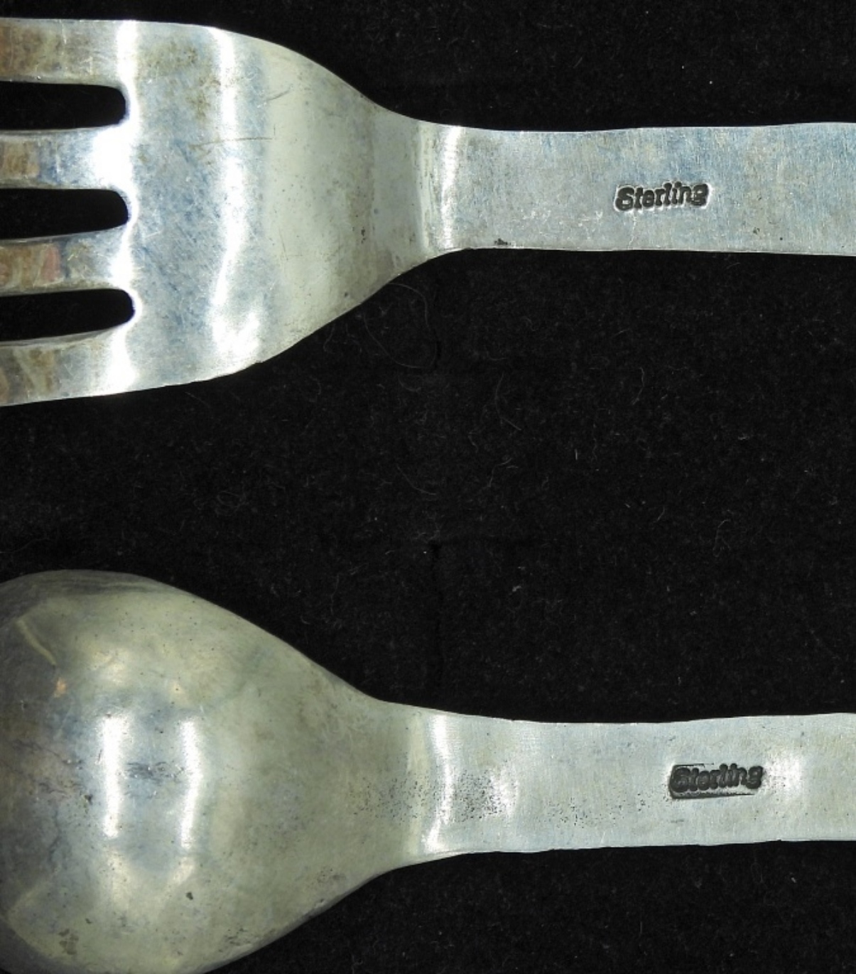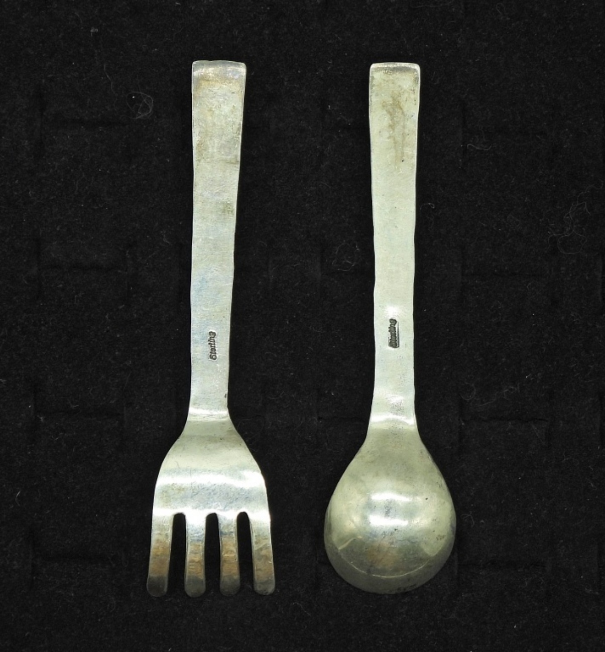 VINTAGE STERLING SOUTHWEST BABY SPOON AND FORK WITH TURQUOISE. MARKED STERLING. 20.4 DWT