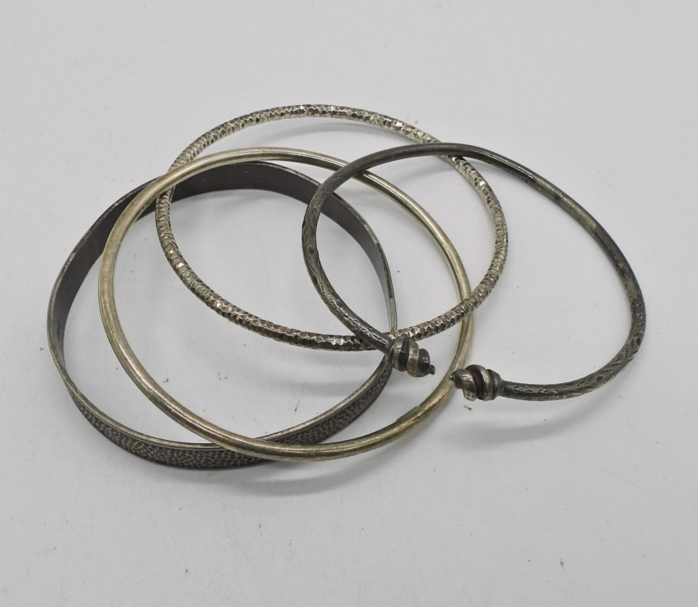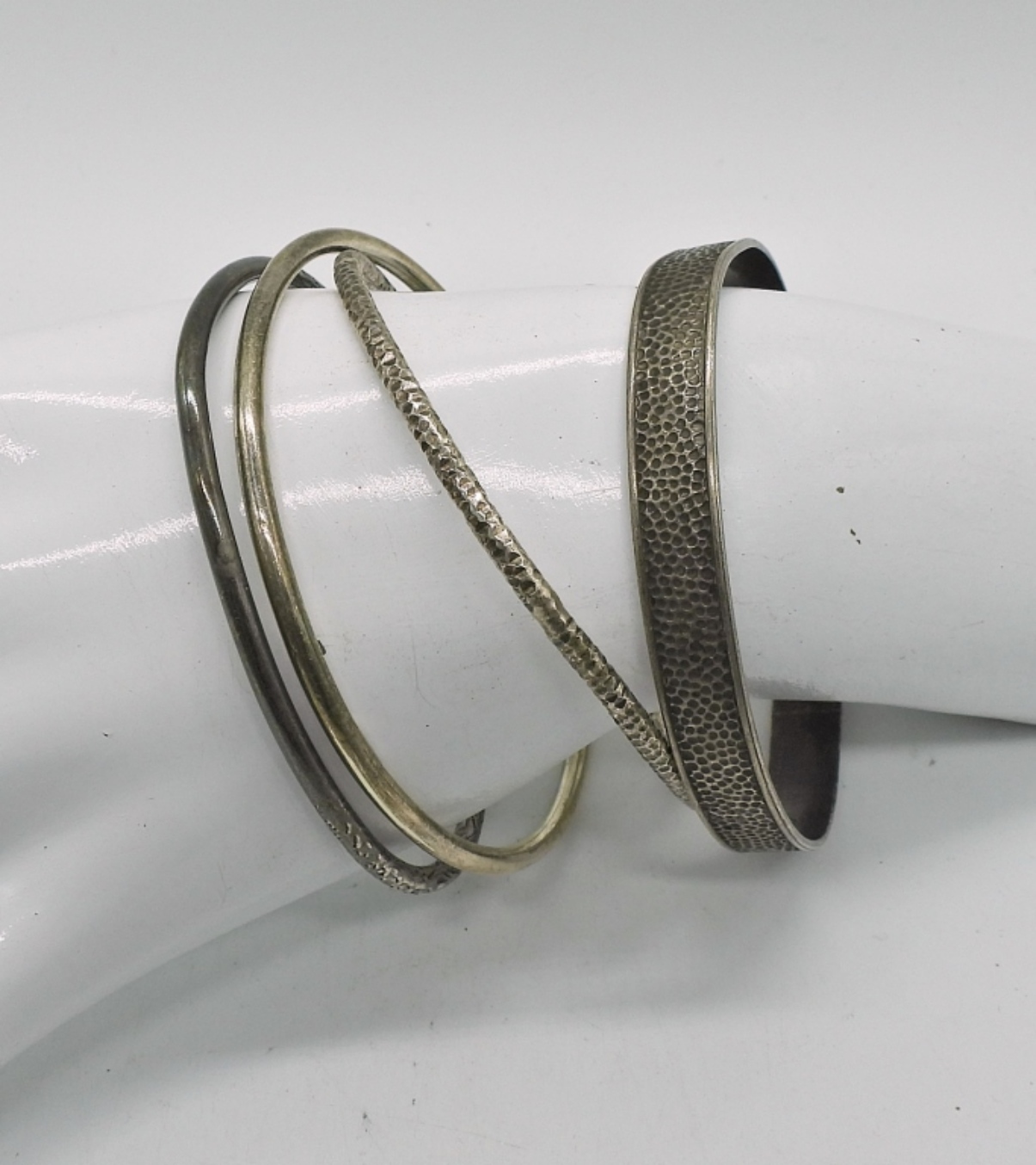 (3) ANTIQUE STERLING SILVER BANGLE STYLE BRACELETS – STAMPED STERLING – 7″ – 27.5 DWT