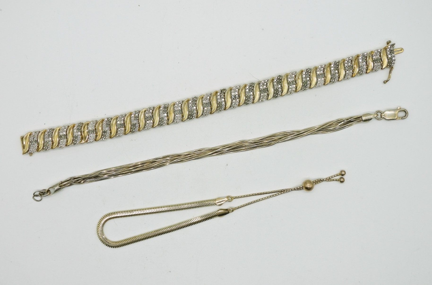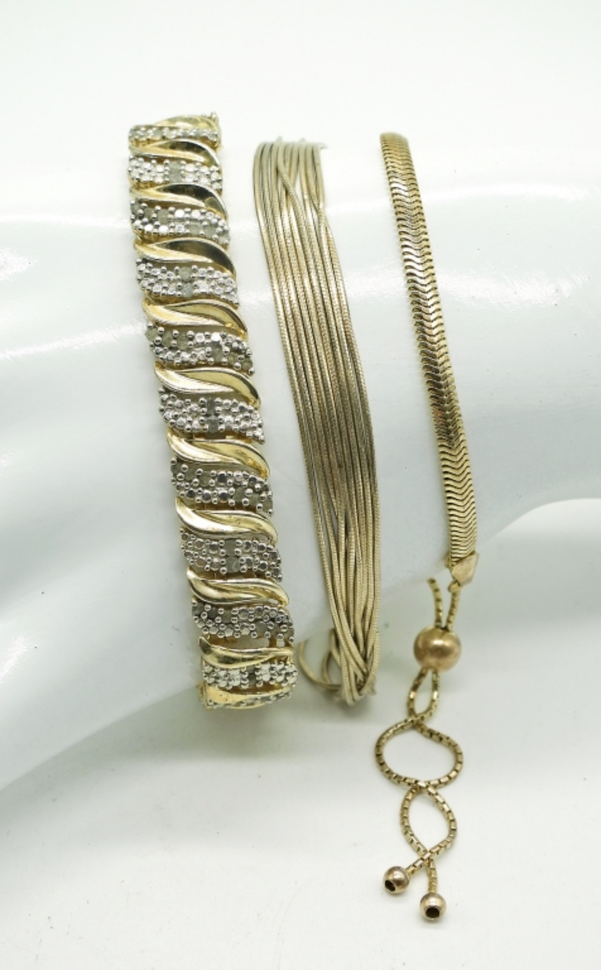 Two 7.5 inch Gold Tone 925 Bracelets & One 7.5 inch Gold Tone Tennis Bracelet – DWT 21.3