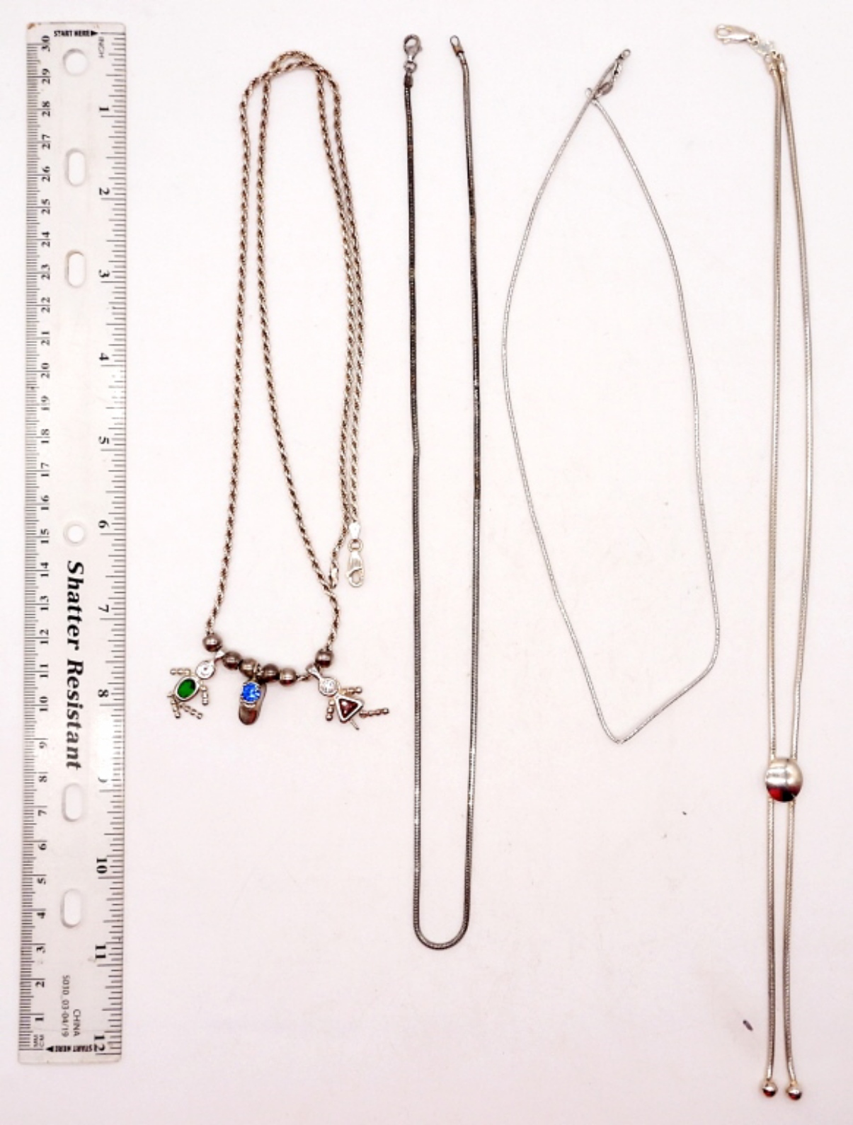 WITH GEMSTONE PENDANTS, VARIOUS LENGTHS 18″-32″ – STAMPED 925 – 34 DWT