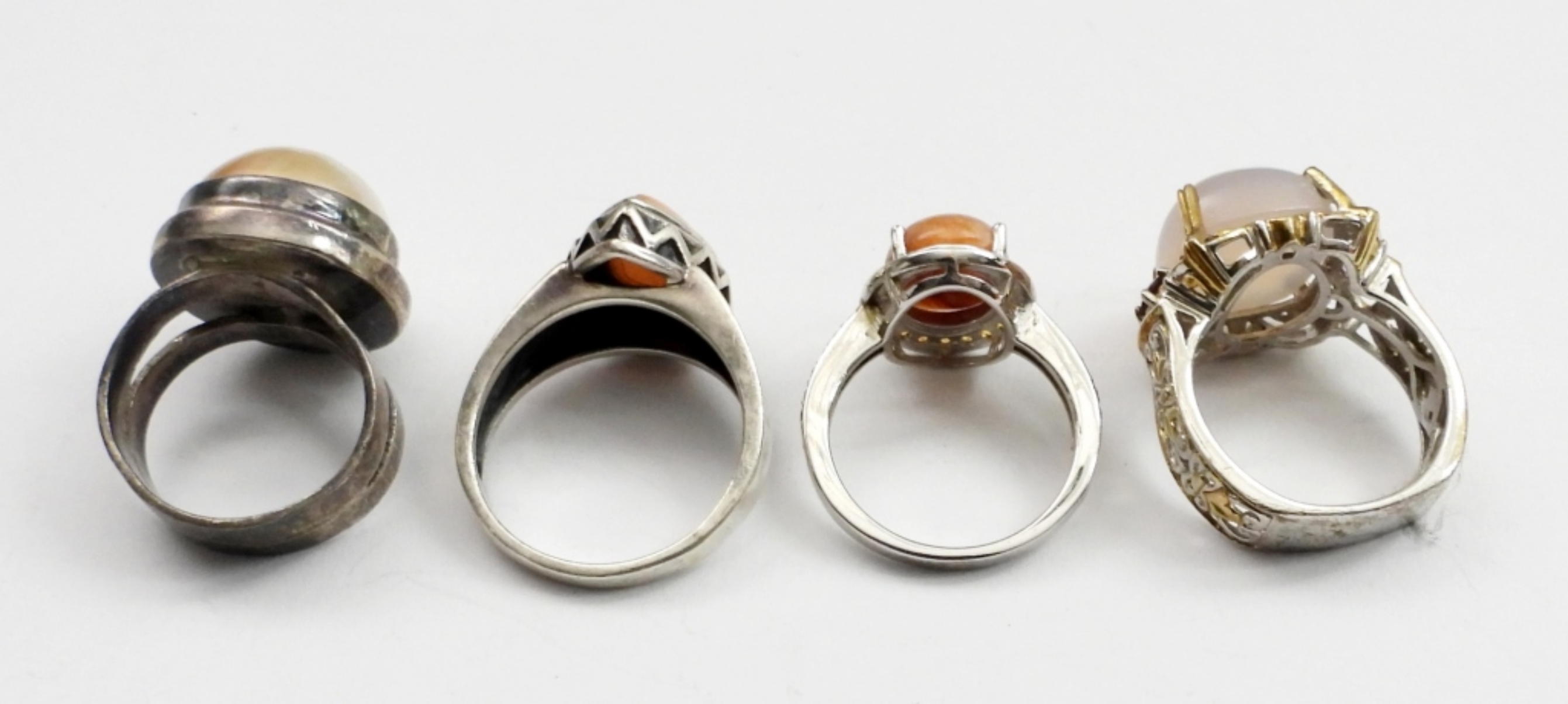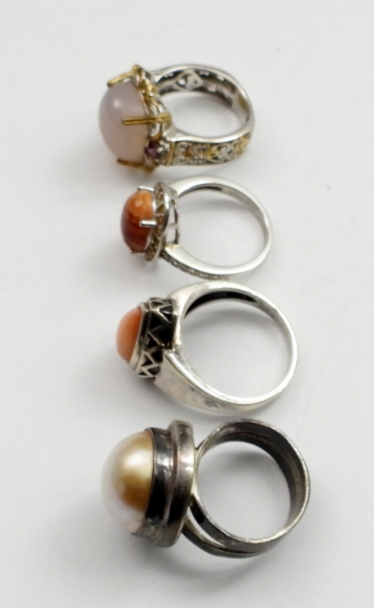 FOUR NATURAL GEMSTONE STERLING RINGS. SIZES 5, 6, 8. 15.3 DWT