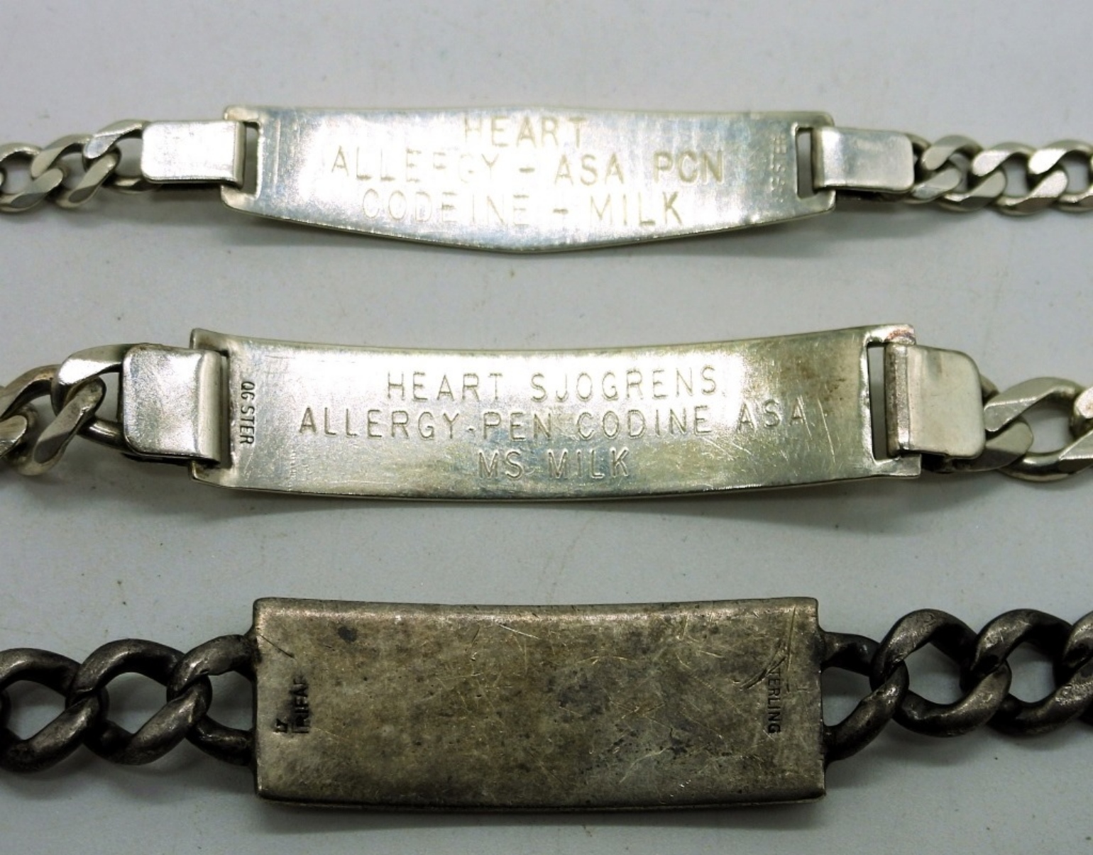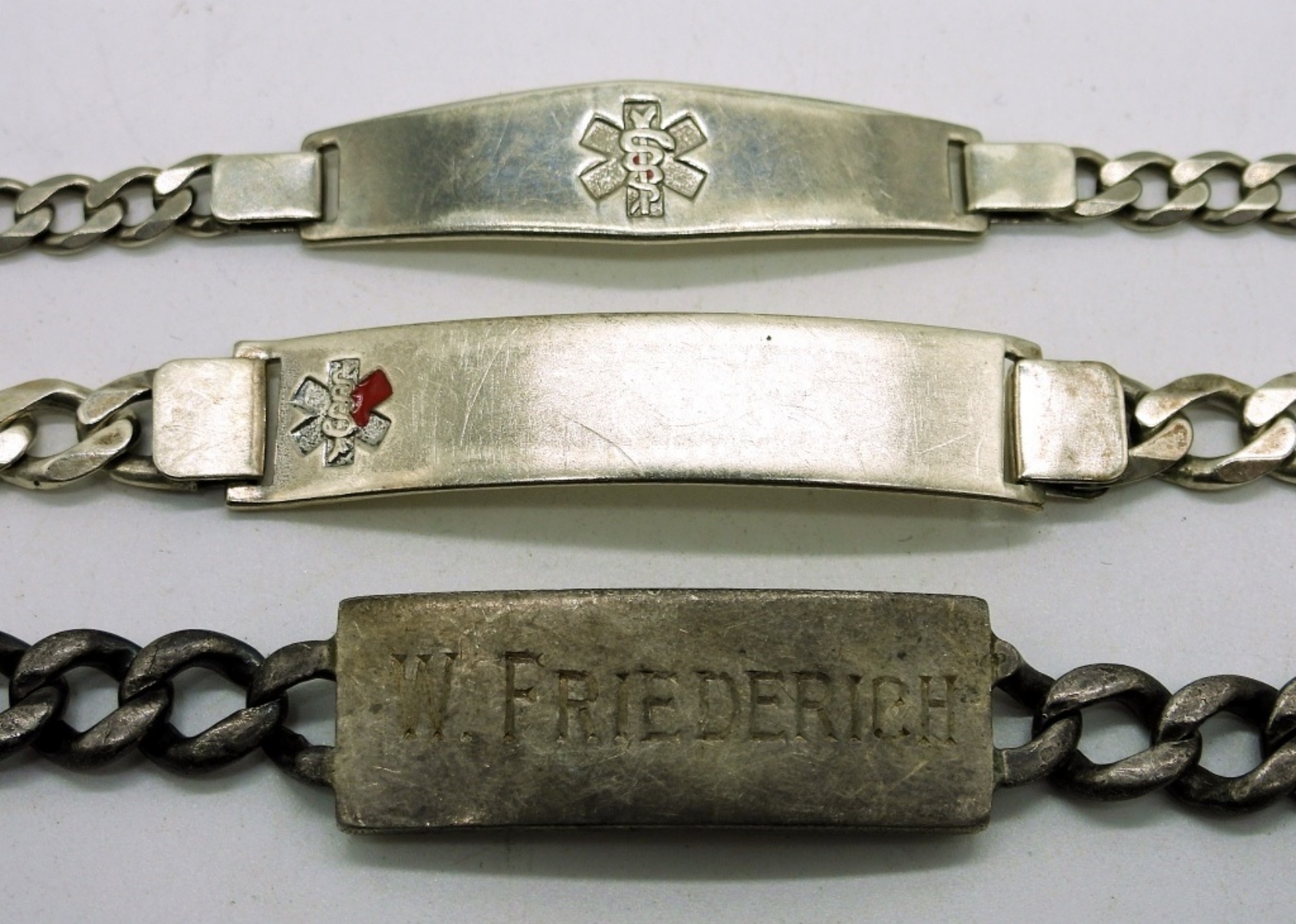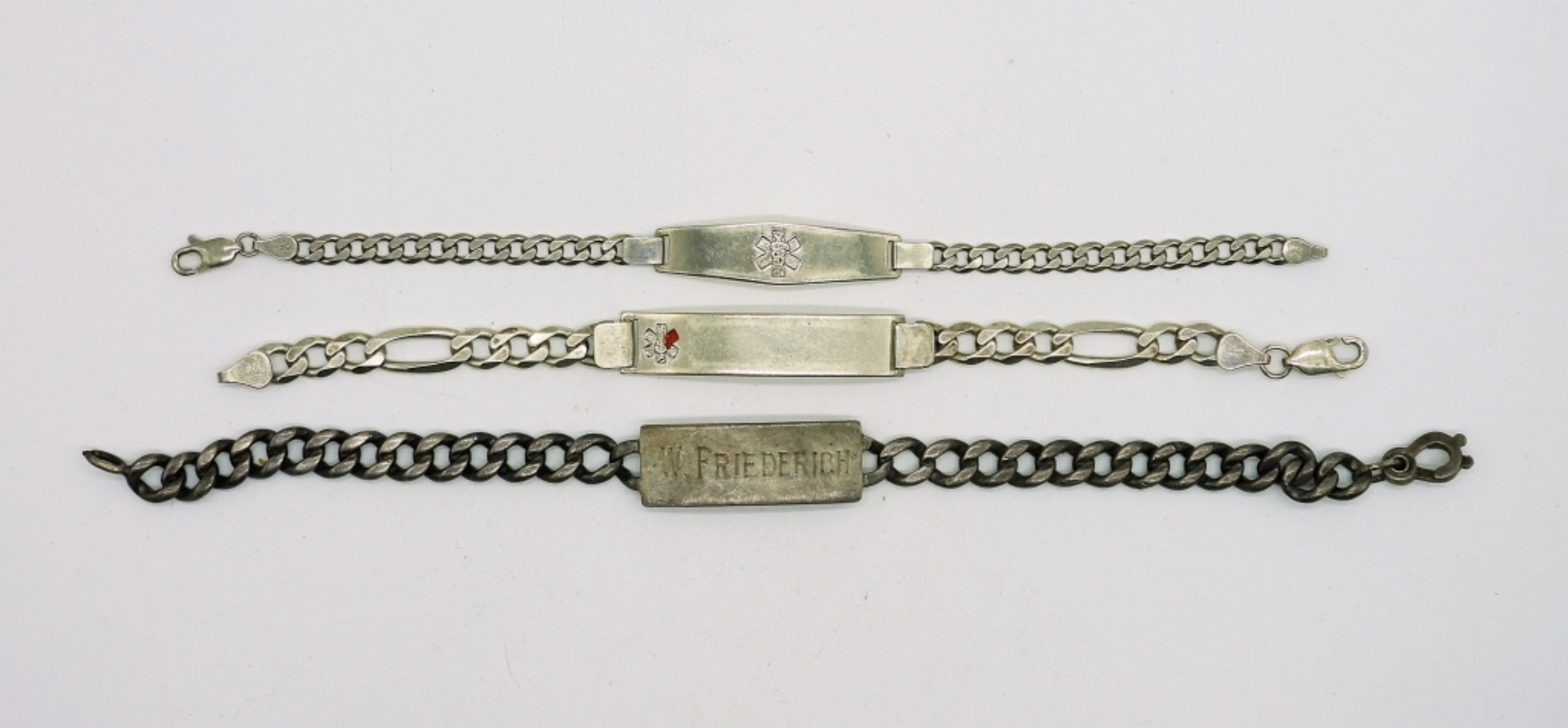 Sterling 8 inch Vintage I.D. Bracelet engraved “W. Friederich”. Two Vintage Medical Alert Bracelets, 6.5 Inches. 29.1DWT