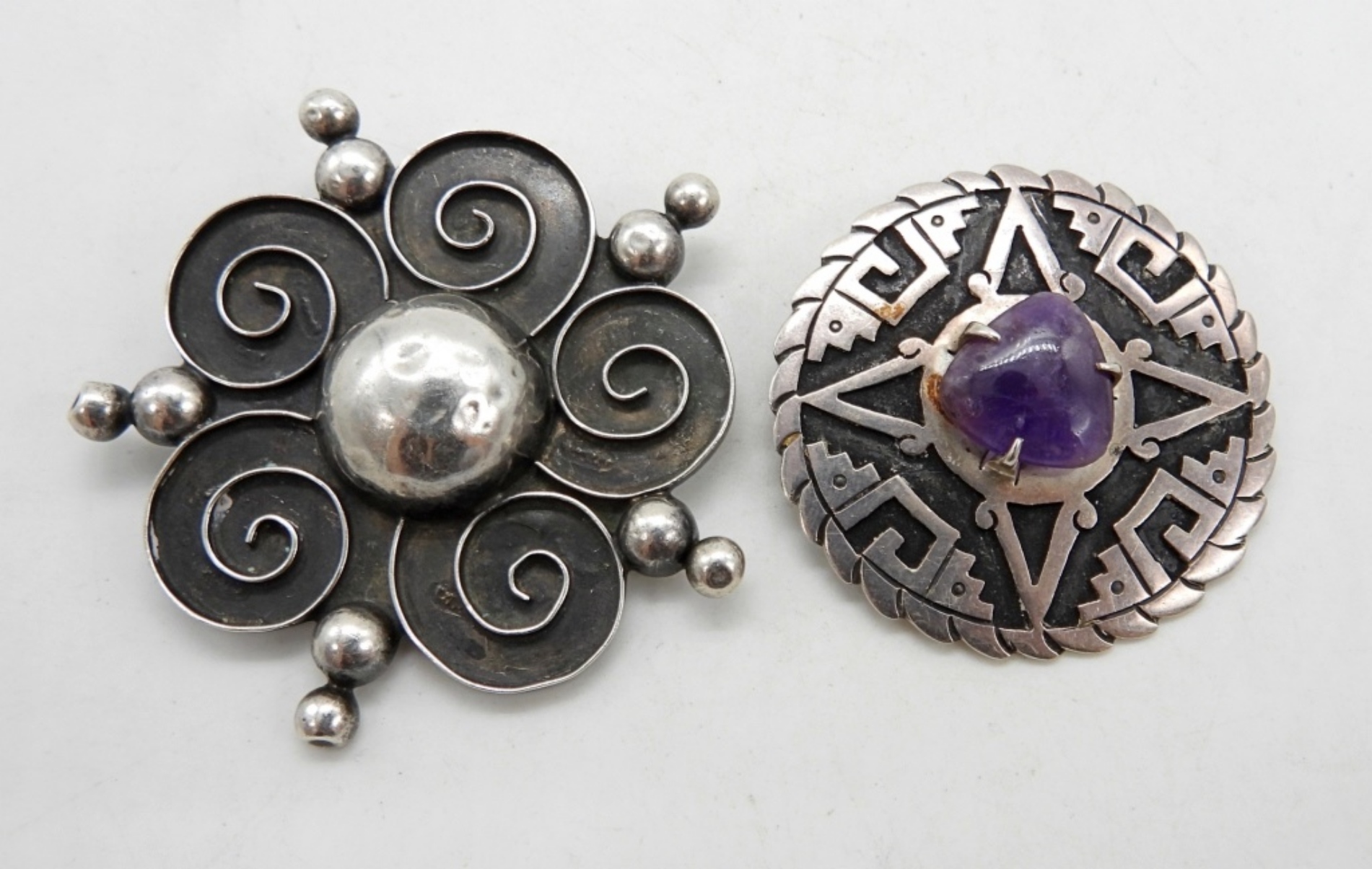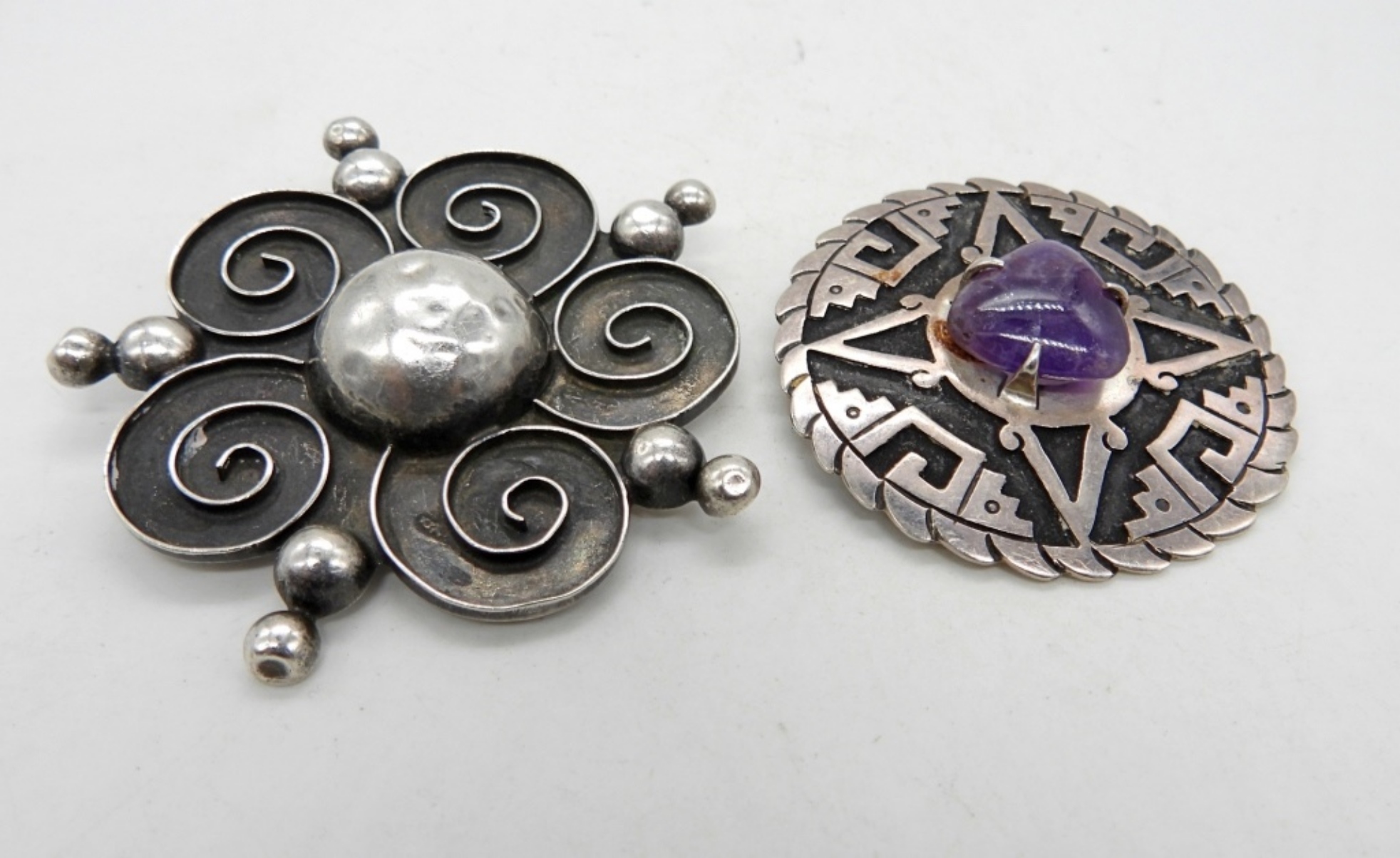 30DWT, 1- WITH A PURPLE STONE STAMPED TAXCO MEXICO 925, THE OTHER STAMPED MEXICO