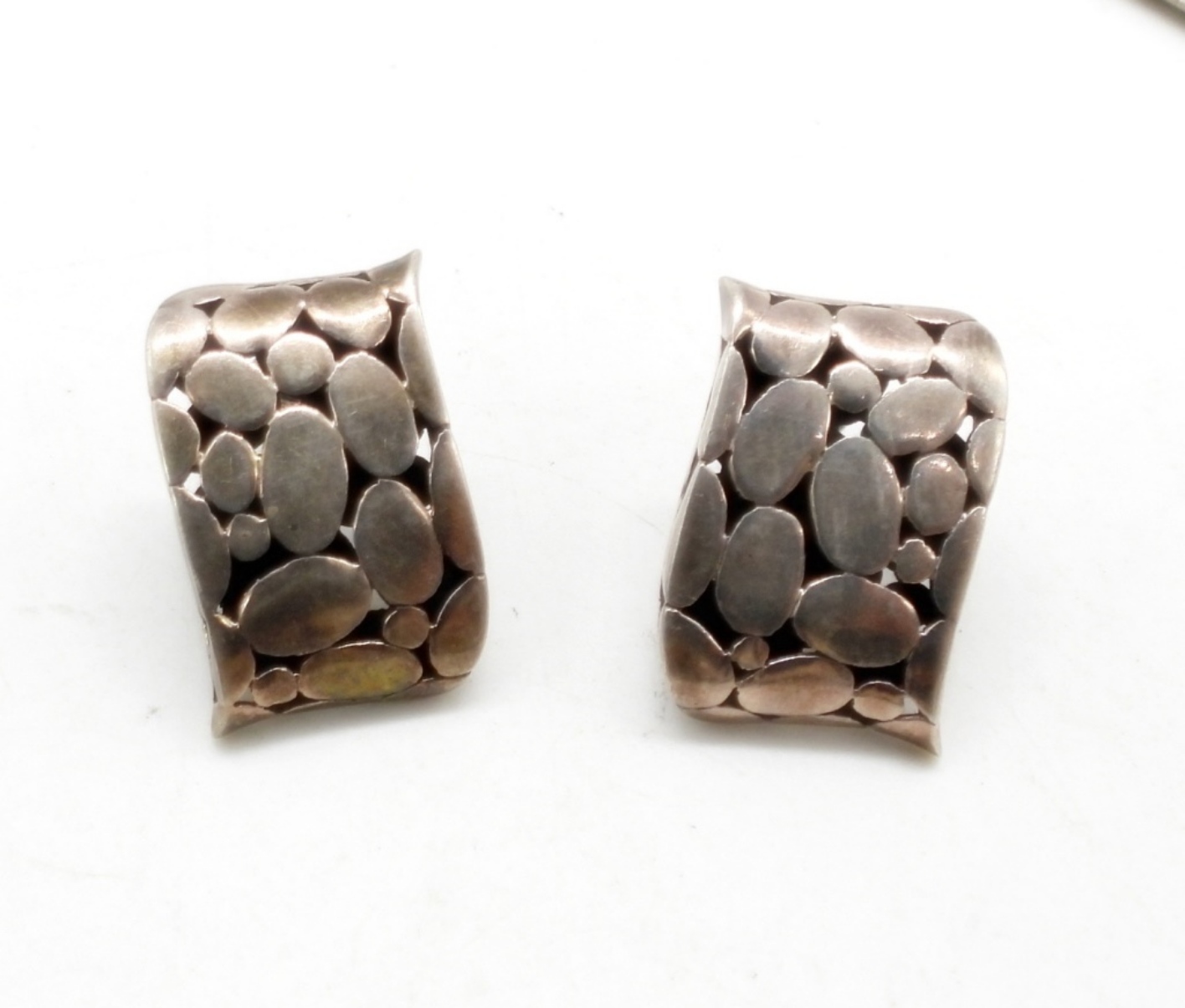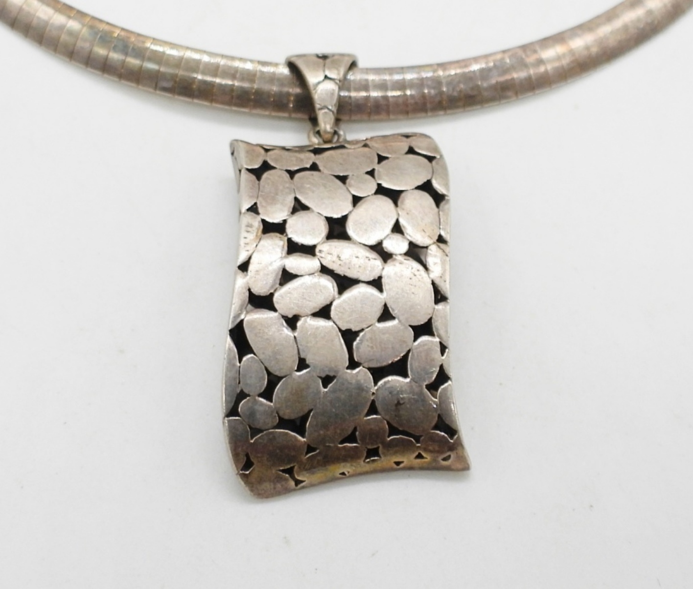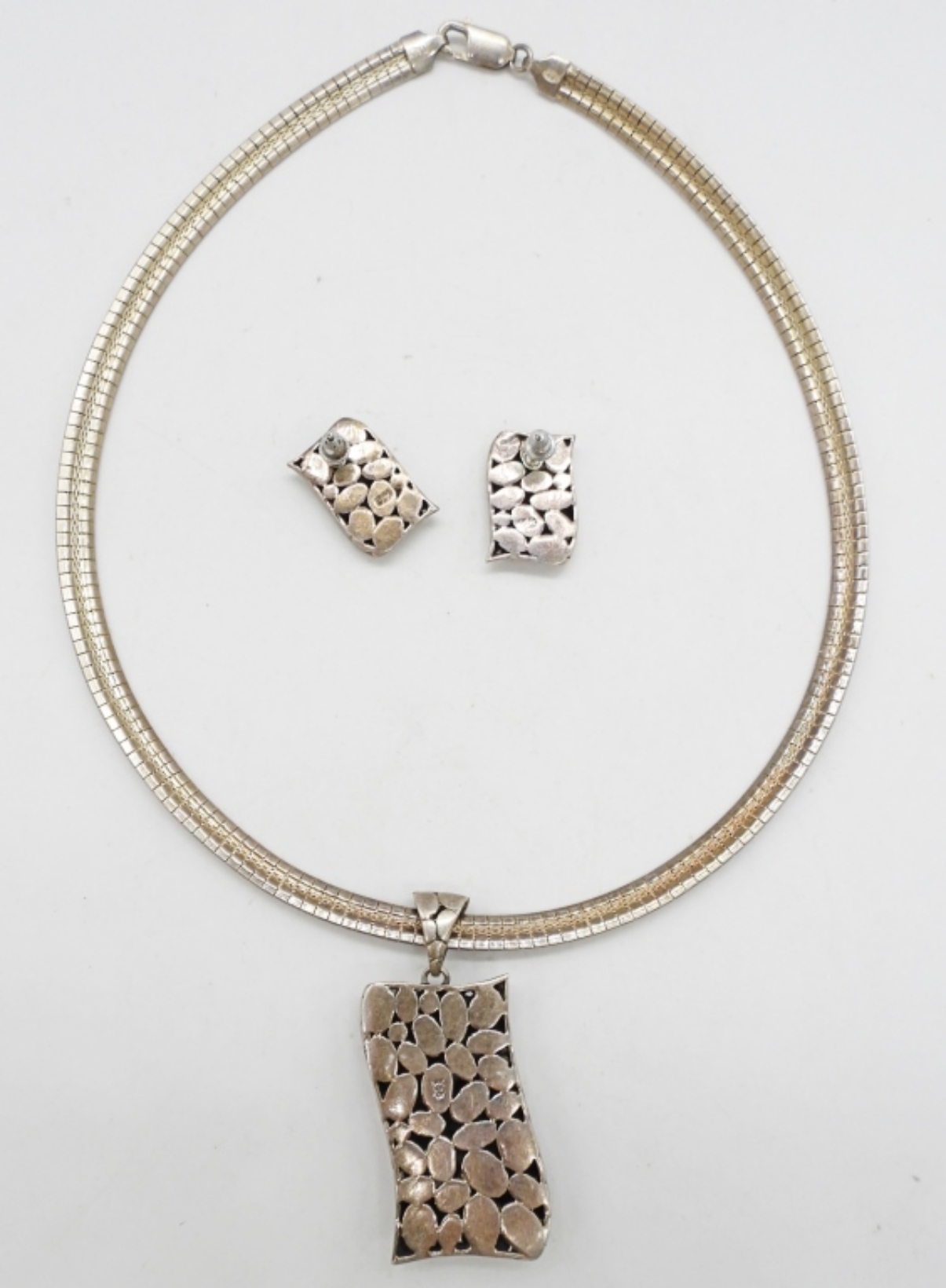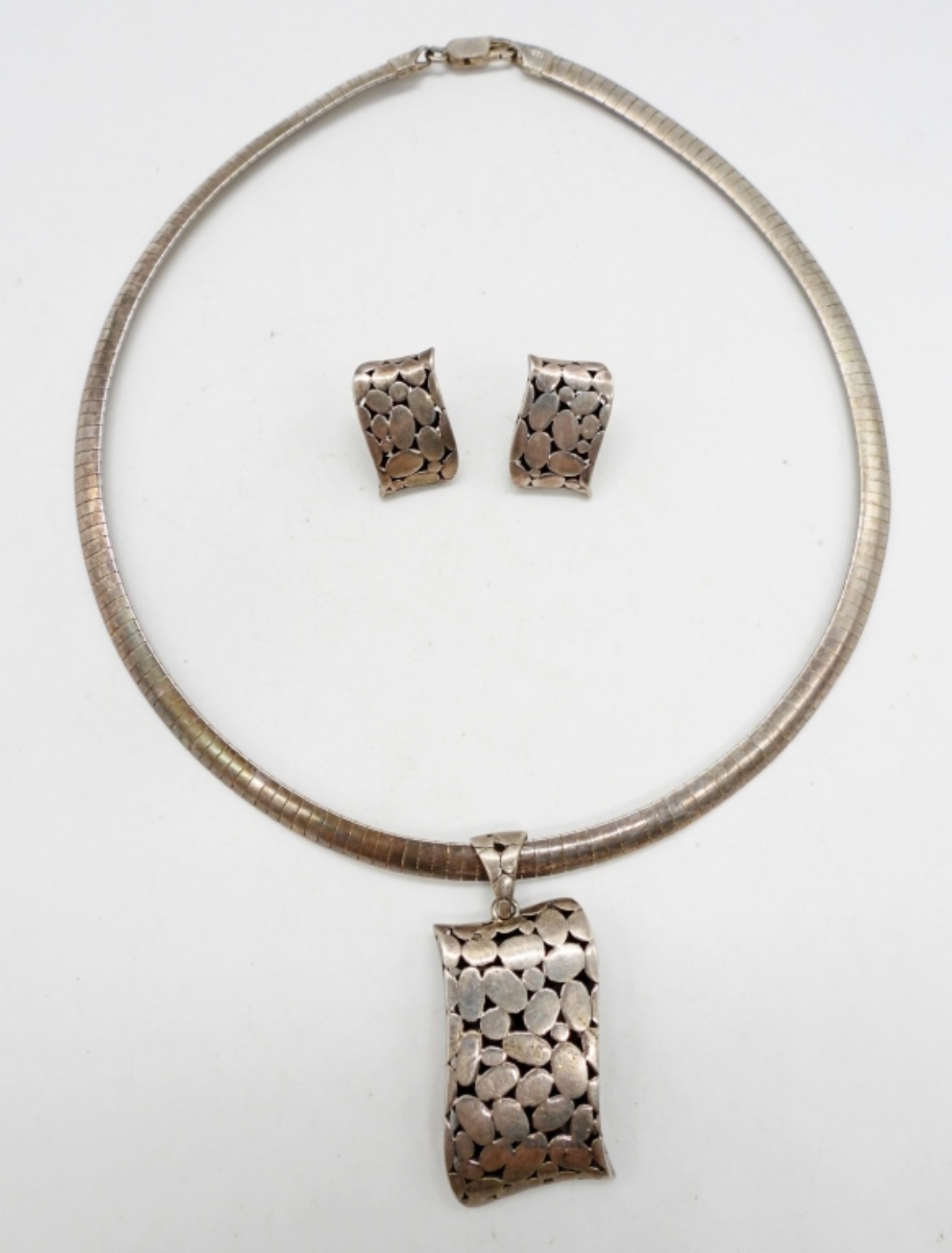 Vintage Sterling Circa 1990’s Pebble Pendant and Earrings. Chain 15.5″. 29.9 DWT