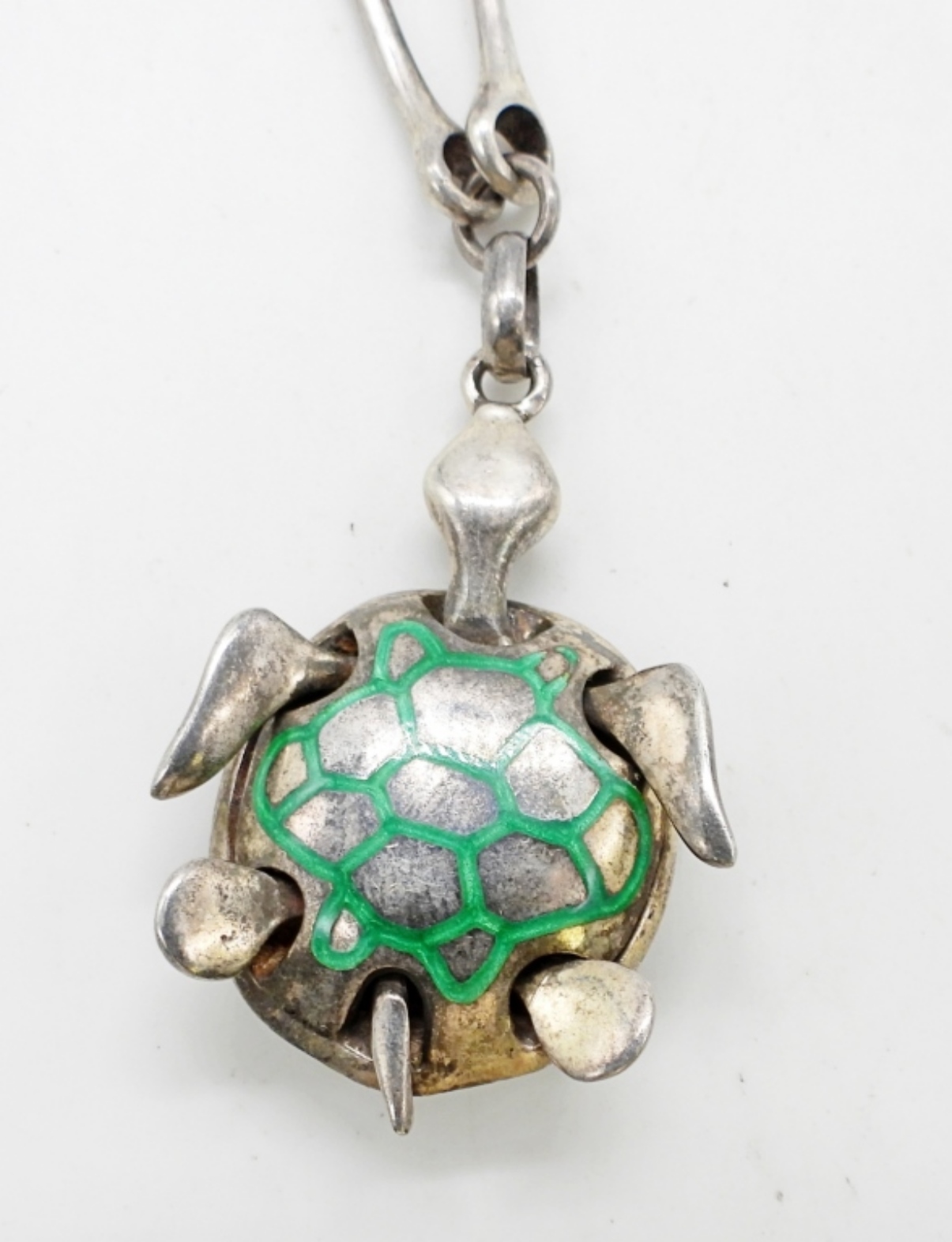 42 DWT. 22″ NECKLACE WITH 2″ LONG TURTLE PENDANT FEATURING MOVING HEAD, FINS, & TAIL! STAMPED ITALY 925