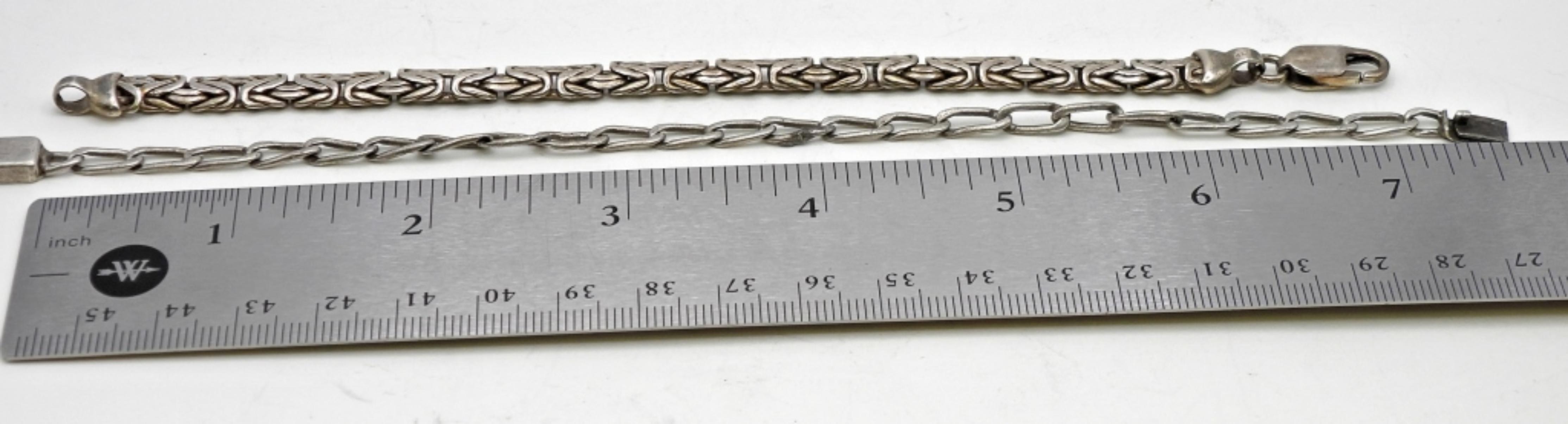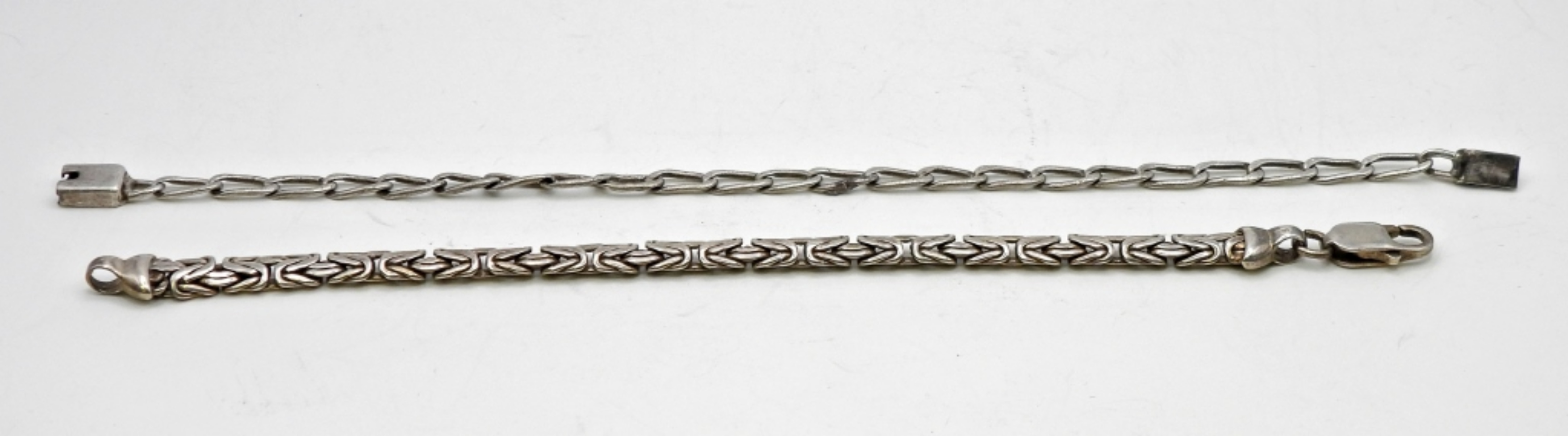 2 MENS STERLING SILVER BRACELETS 1 7INCH, 1 8INCH. 14.9 DWT