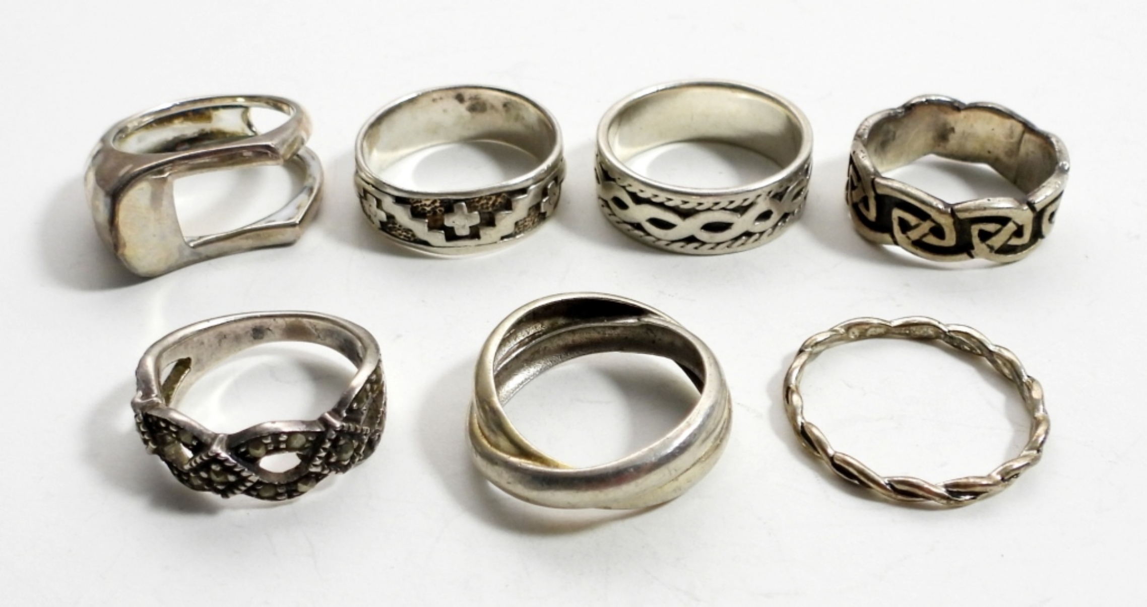 WITH MARCASITE & ENGRAVED DESIGNS – STAMPED 925 – SIZES VARY 6-9 – 20.9 DWT