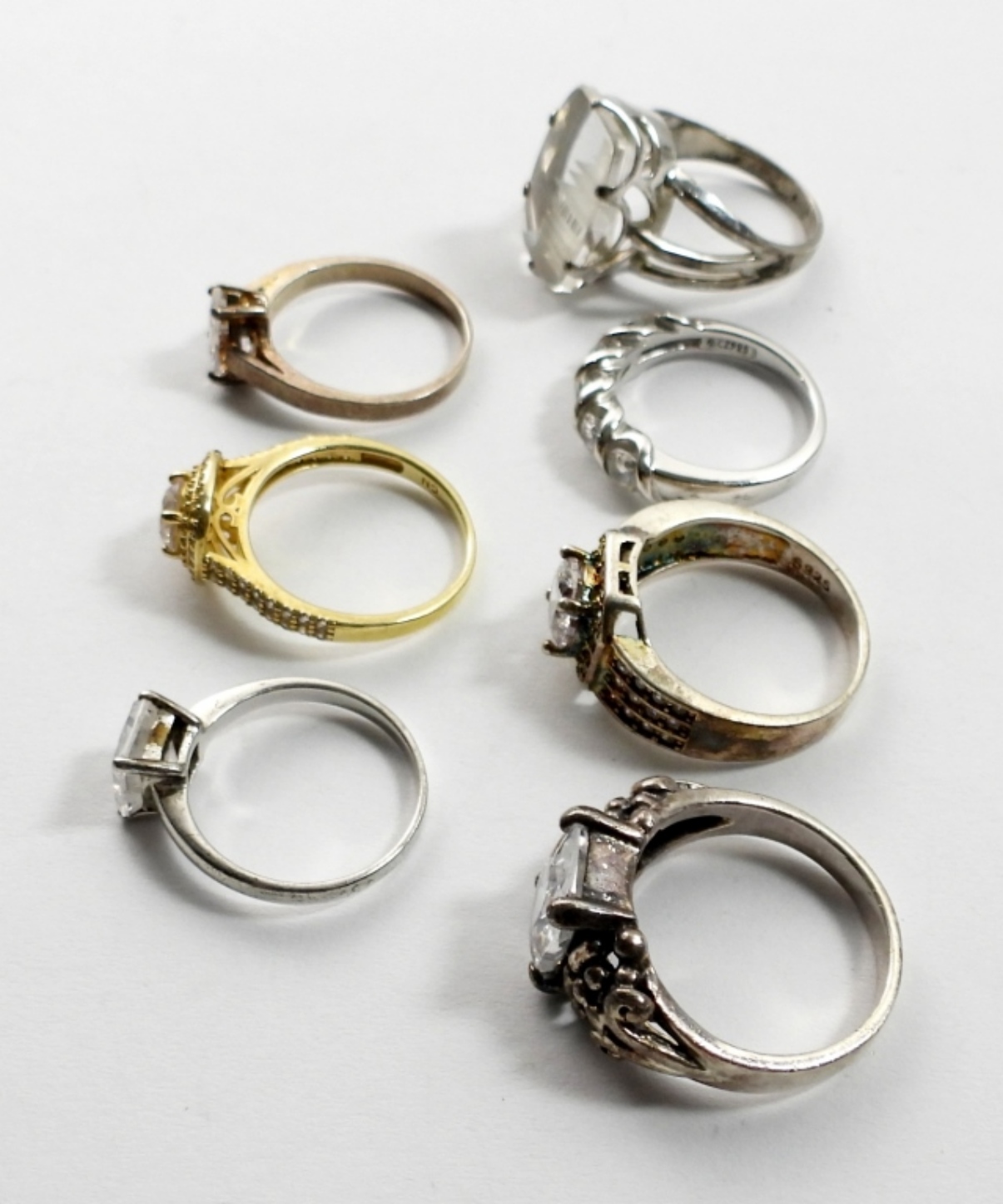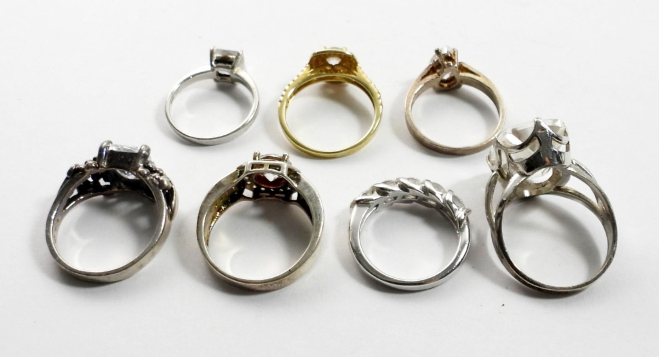 SEVEN STERLING BRIDAL STYLE RINGS, SIZES 6-8. 18 DWT