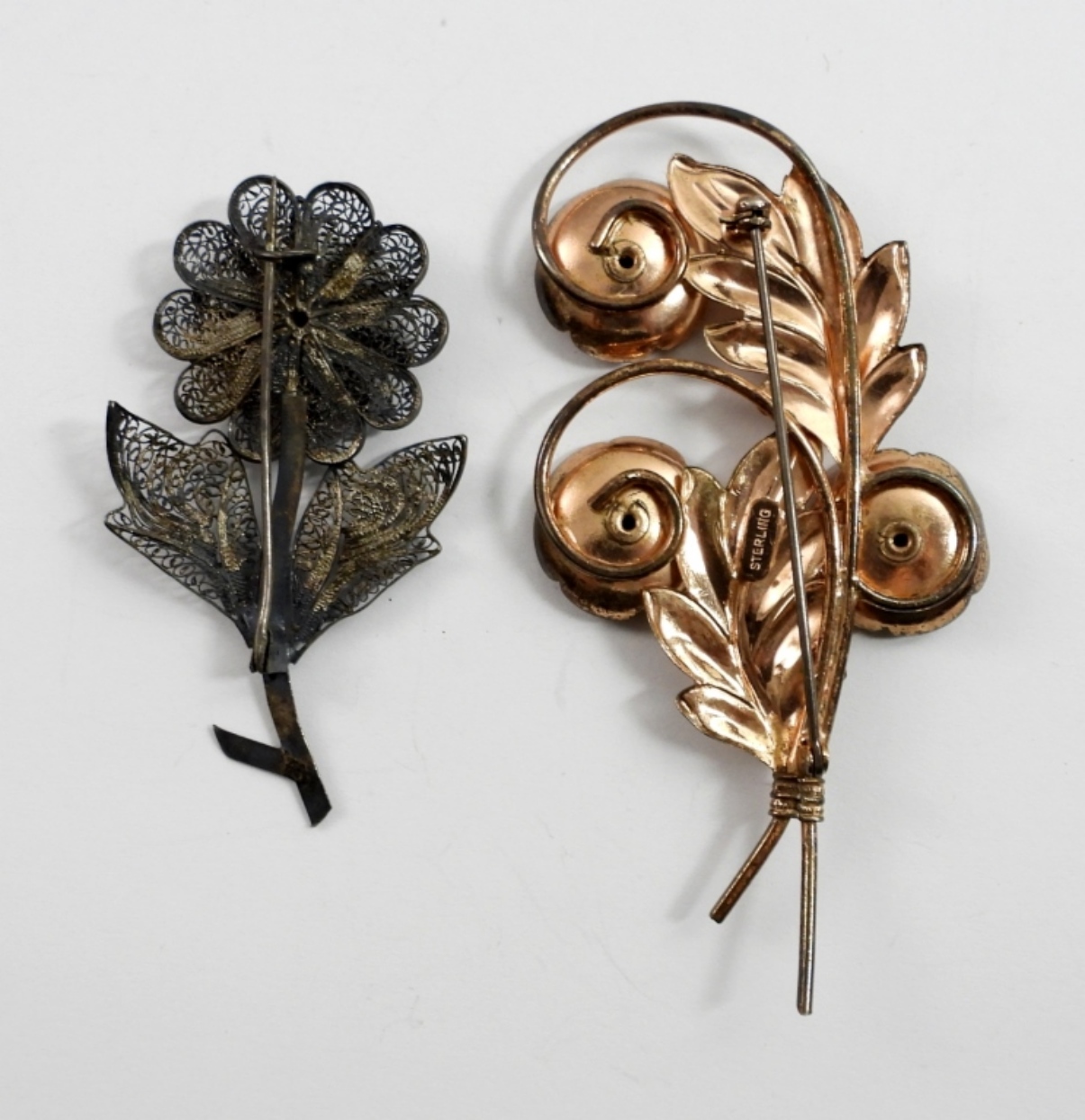 (1) COPPER TONE w/PURPLE STONES (1) FILIGREE DARK TONED FLORAL (20 DWT)