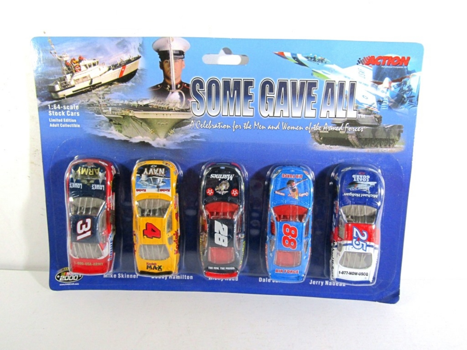 “SOME GAVE ALL” ARMED FORCES SET OF 5 NASCAR DIE CAST SET. SKINNER, HAMILTON, RUDD, JARRETT, NADEAU. CIRCA 2000