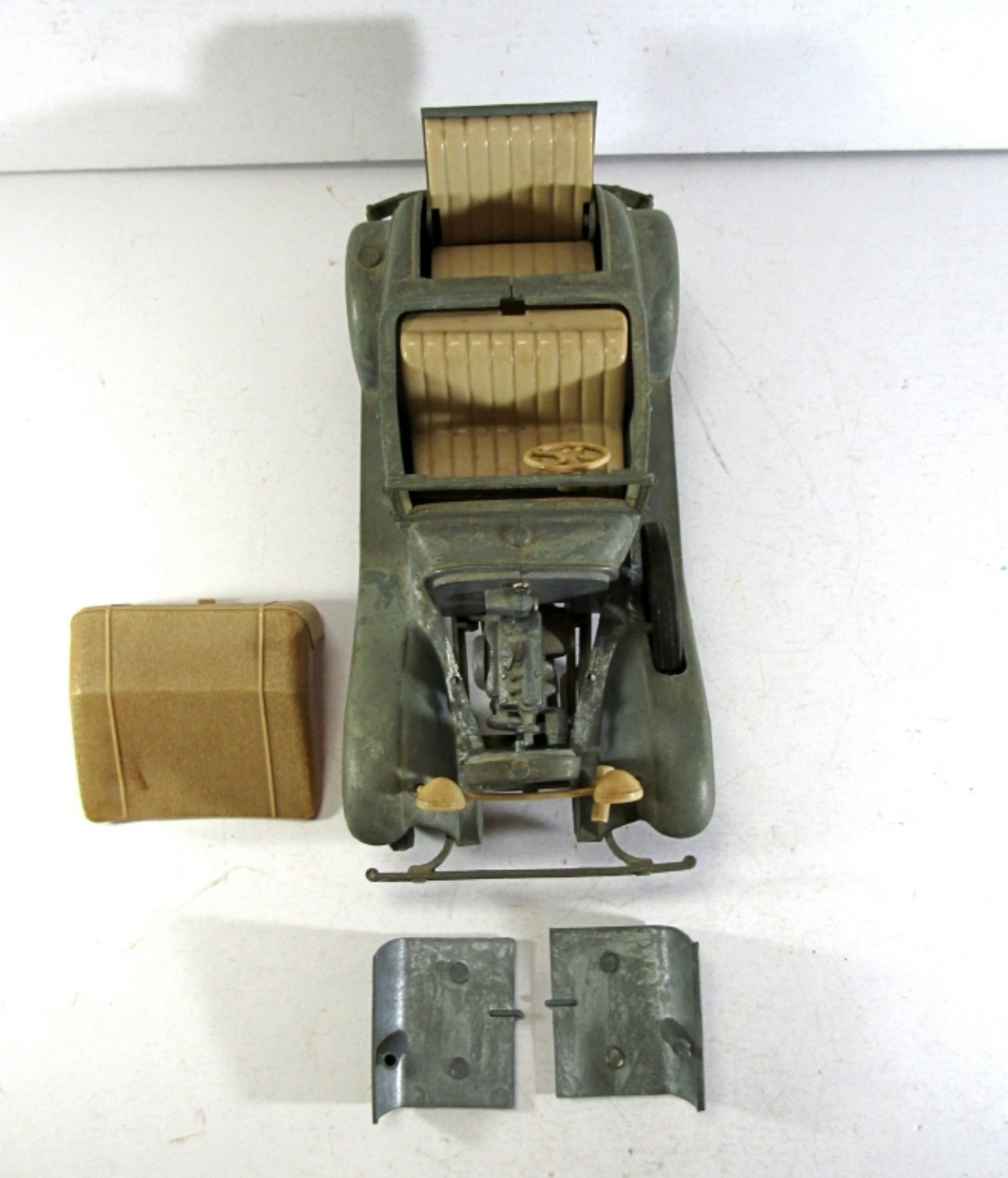 VINTAGE HUBLEY CAST IRON METAL ROADSTER CAR MODEL 854-5K LANCASTER PA. ENGINE PIECES COME APART, BACK OPENS UP. GOOD CONDITION.