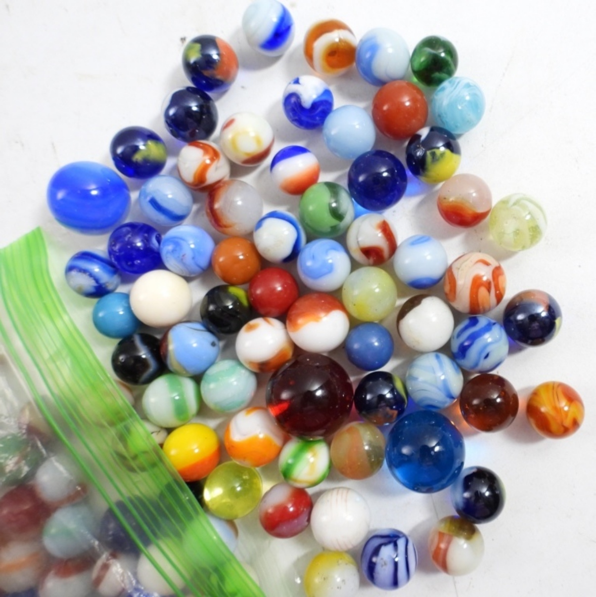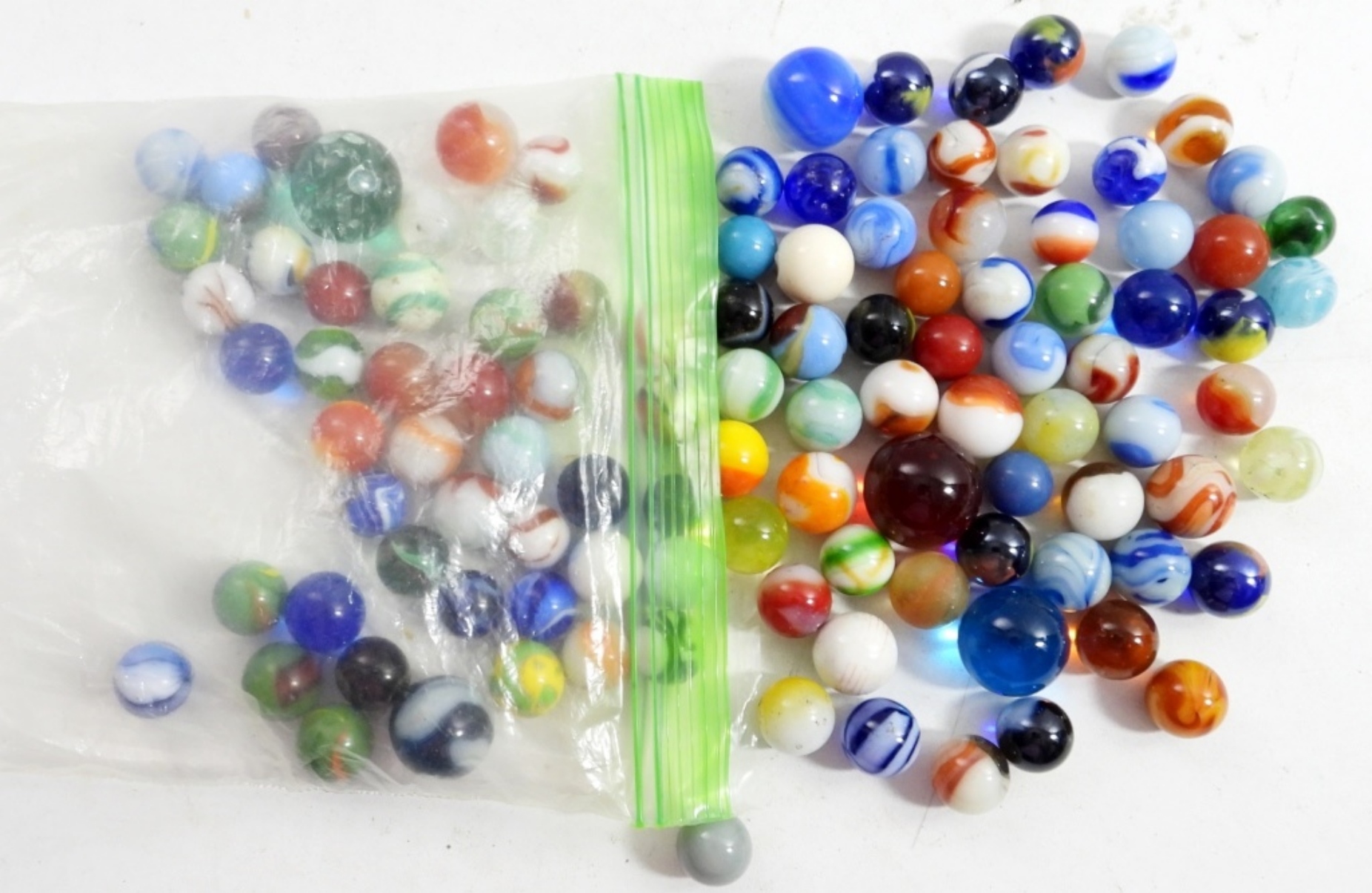 1.90 LB OF VINTAGE GLASS MARBLES.
