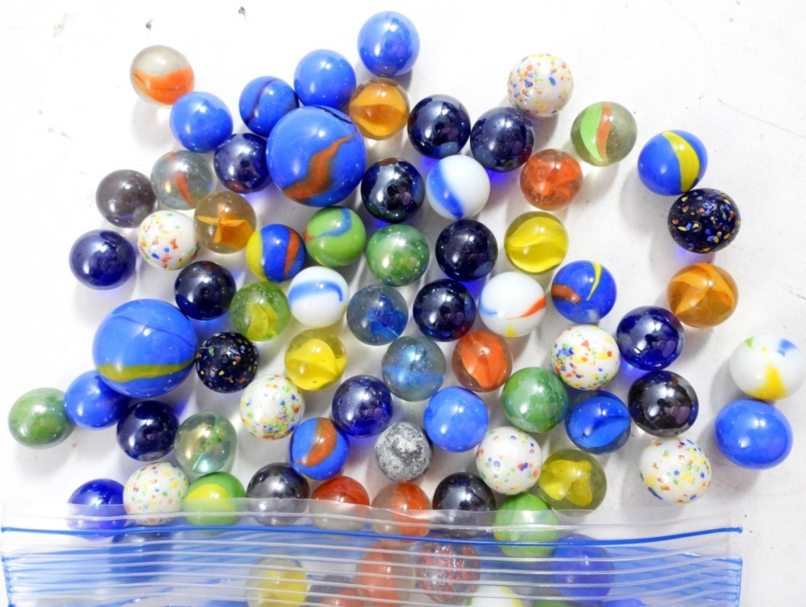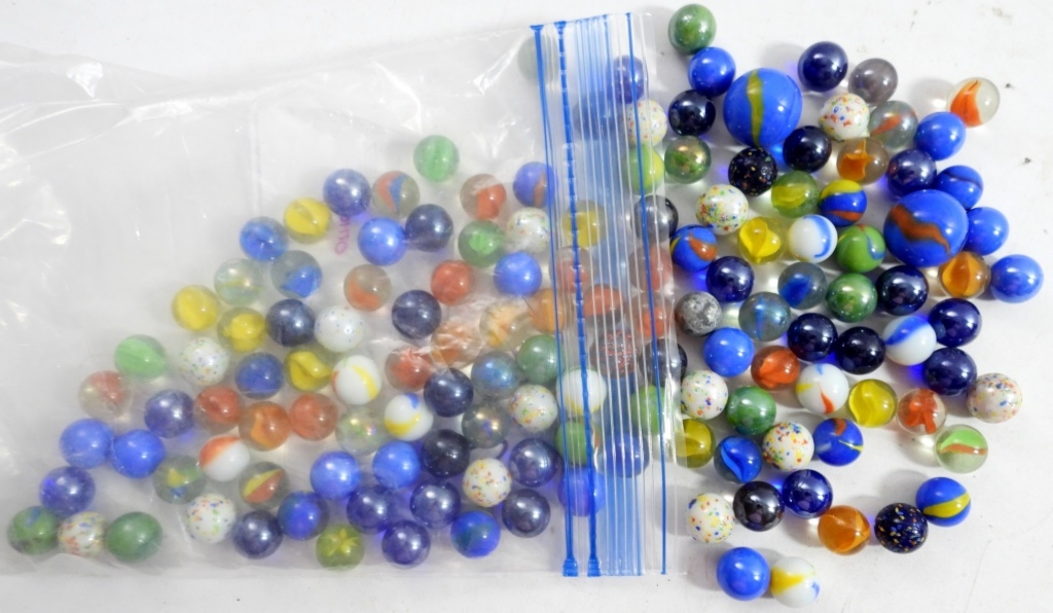 1.71 LB OF VINTAGE GLASS MARBLES.