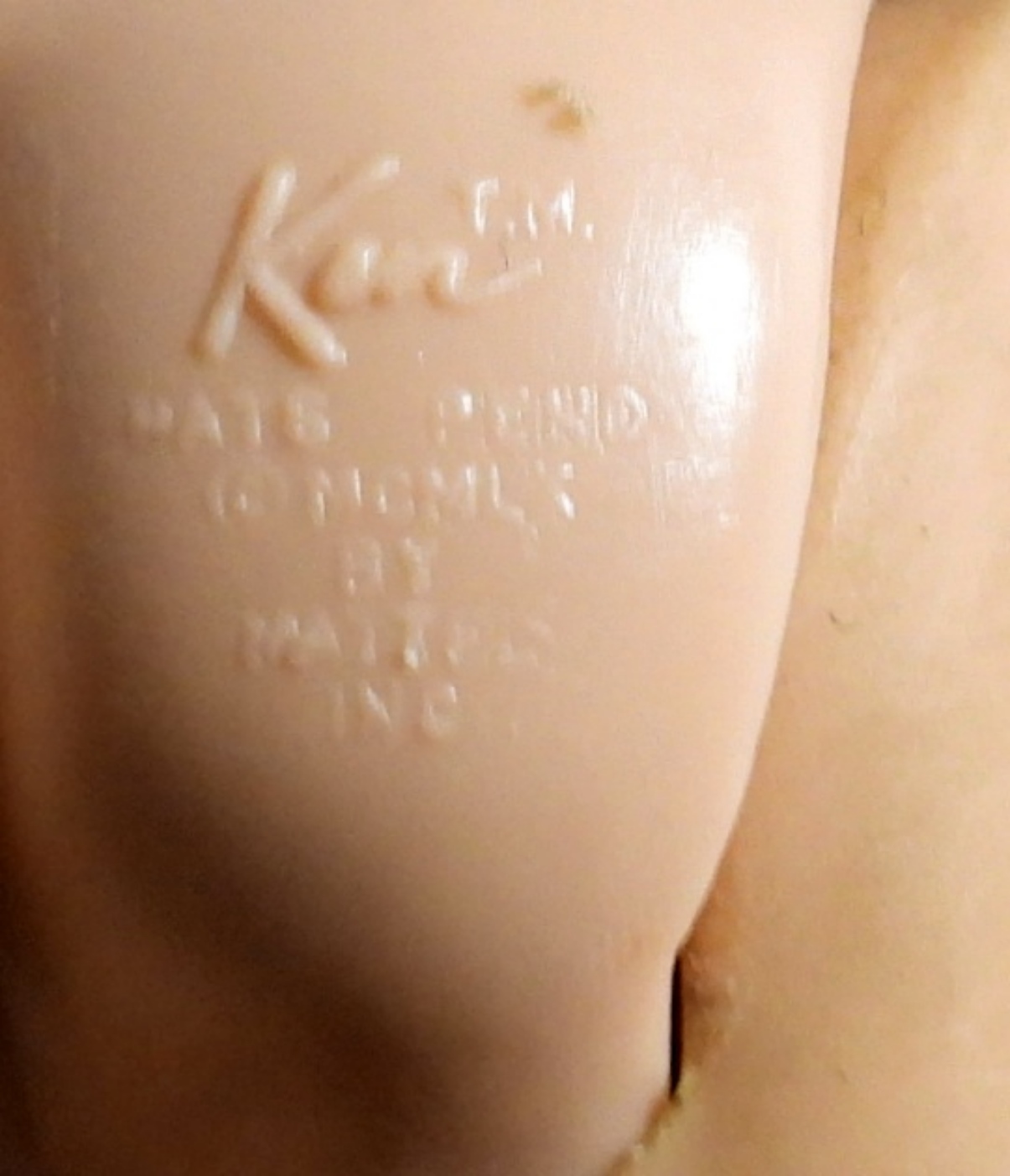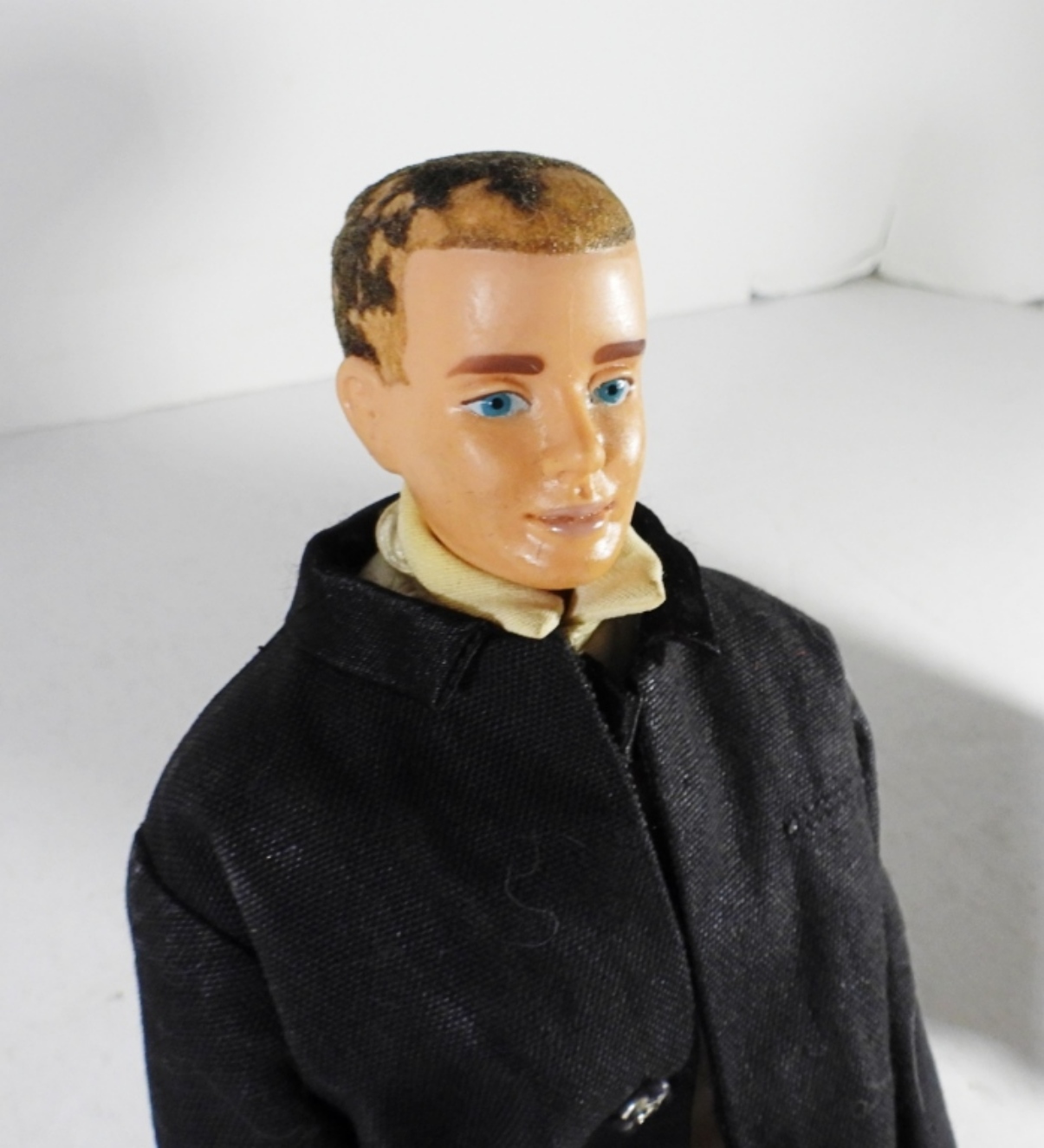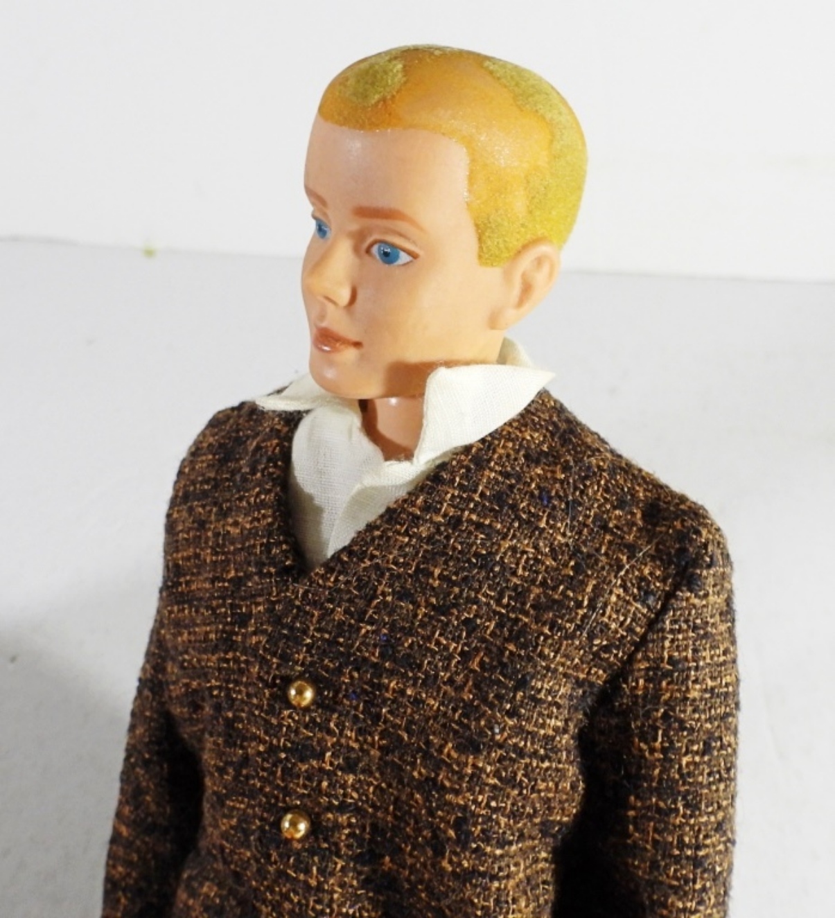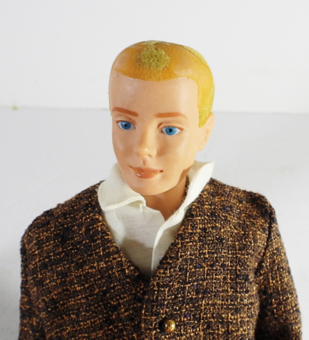 WITH FLOCKED HAIR ( IS PATCHY FROM THE YEARS, BROWN AND BLONDE HEADS, TRADEMARKED ON THE BACK