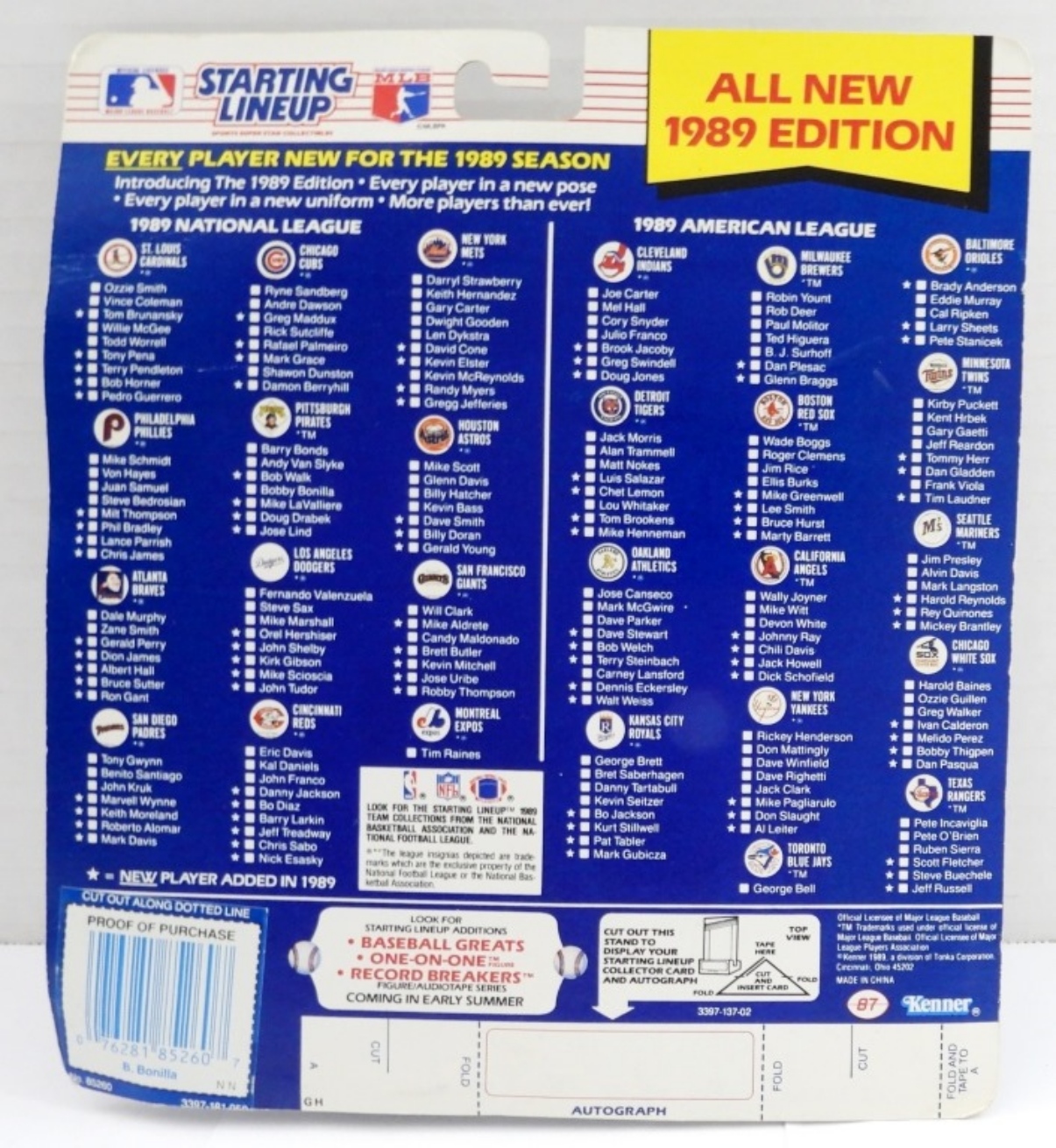 1989 BOBBY BONILLA STARTING LINEUP SPORTS FIGURE WITH COLLECTORS CARD. NEW IN BOX.
