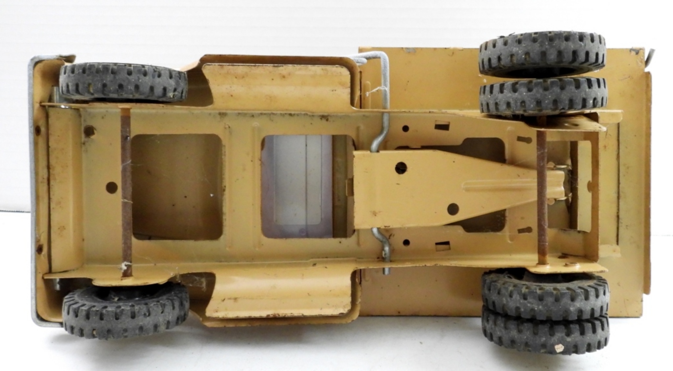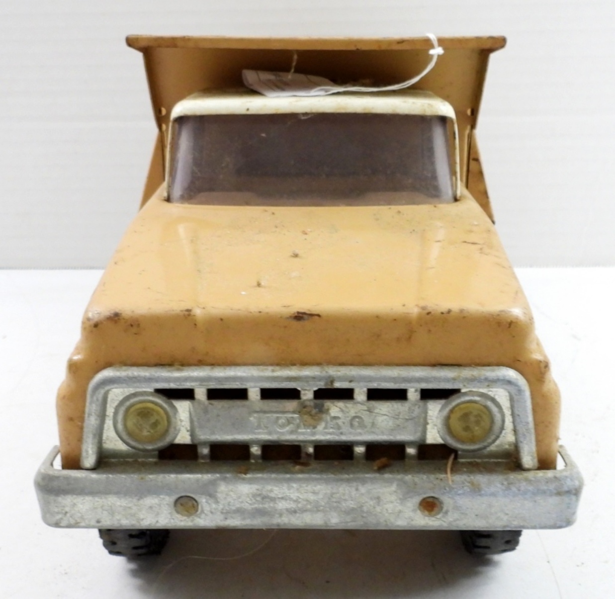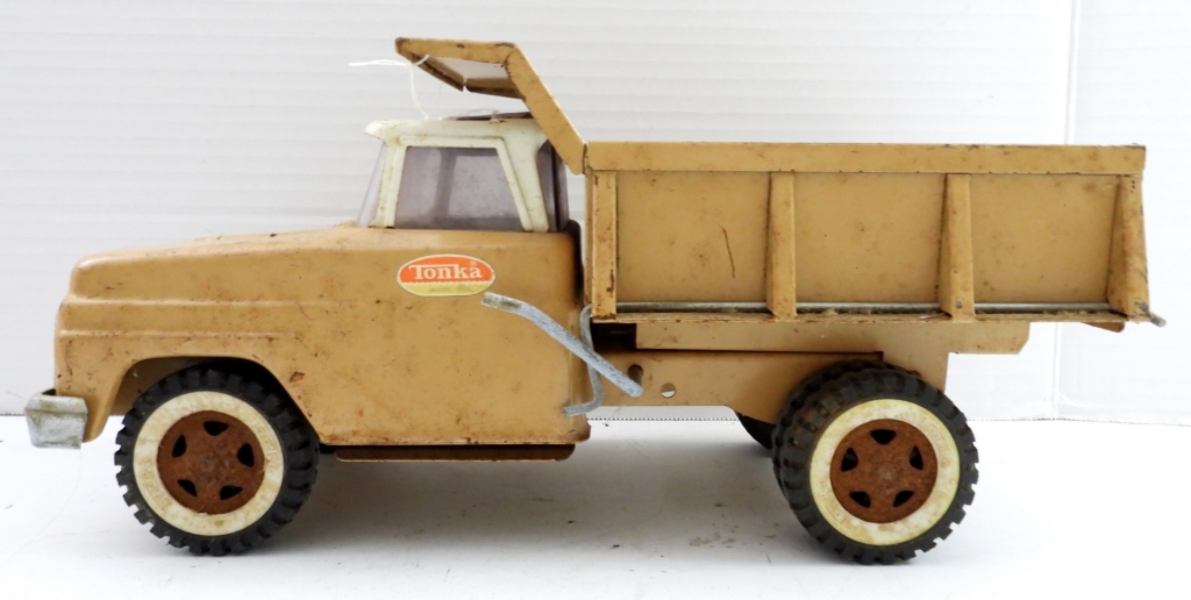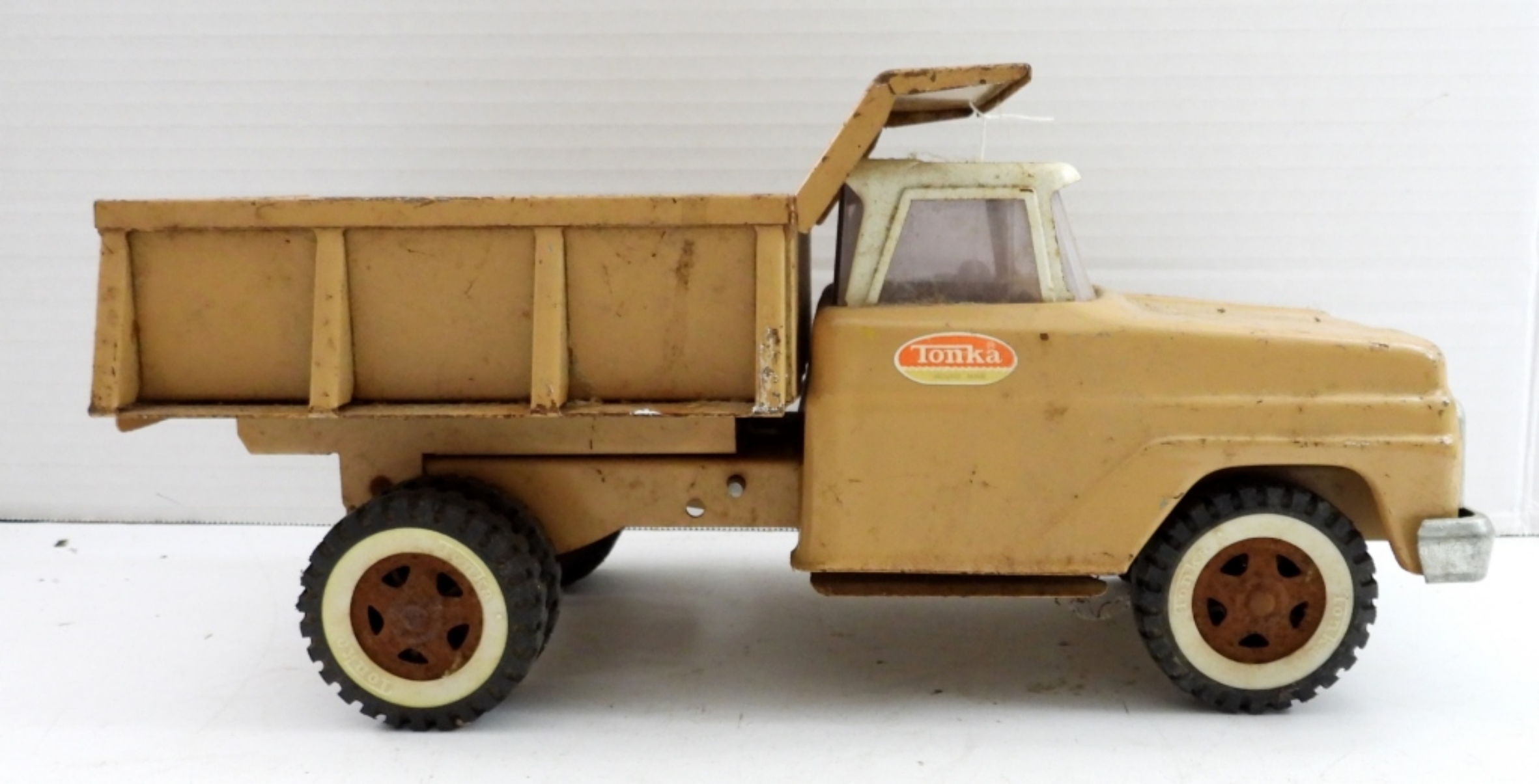 VINTAGE TONKA CLASSIC STEEL DUMP TRUCK. SOME RUST, MOVING PARTS STILL MOVE. 13″LONG, 6″ HIGH.
