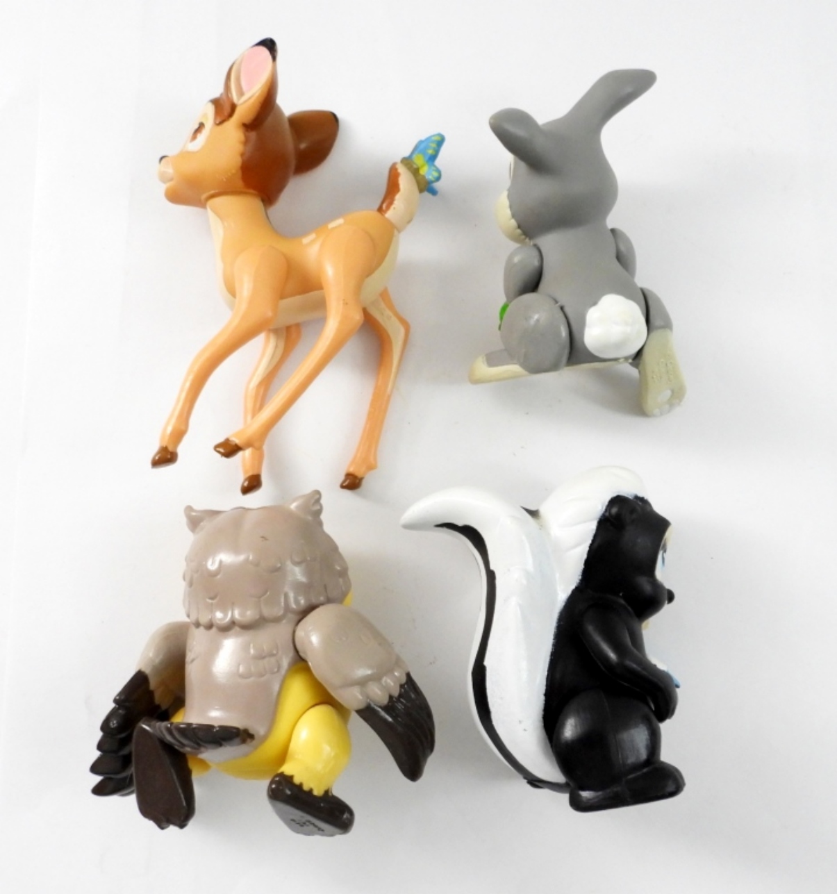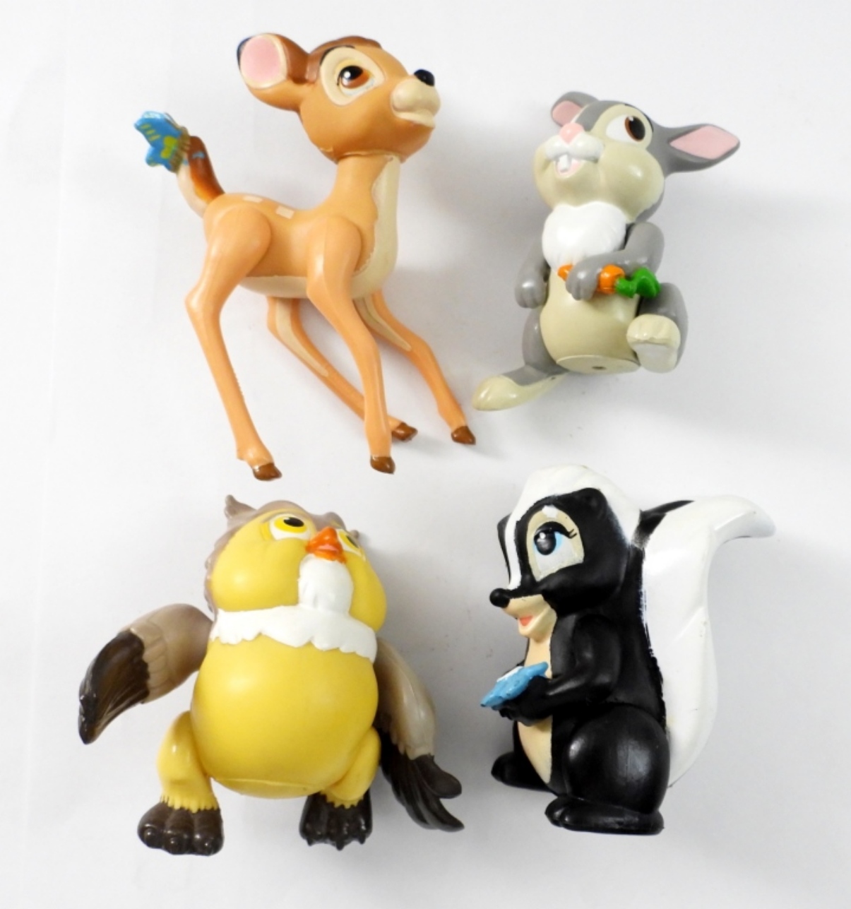 BAMBI, FLOWER, OWL, THUMPER PLASTIC DISNEY FIGURINES. LIKE NEW.