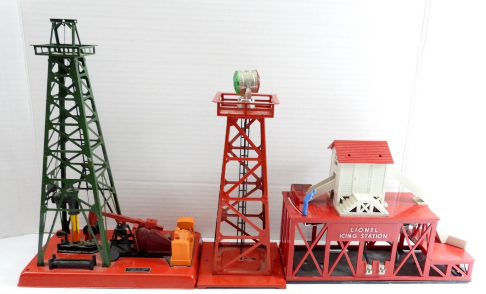ALL IN GREAT CONDITION. #455 OIL DERRICK AND PUMPER #494 BEACON # ICING STATION