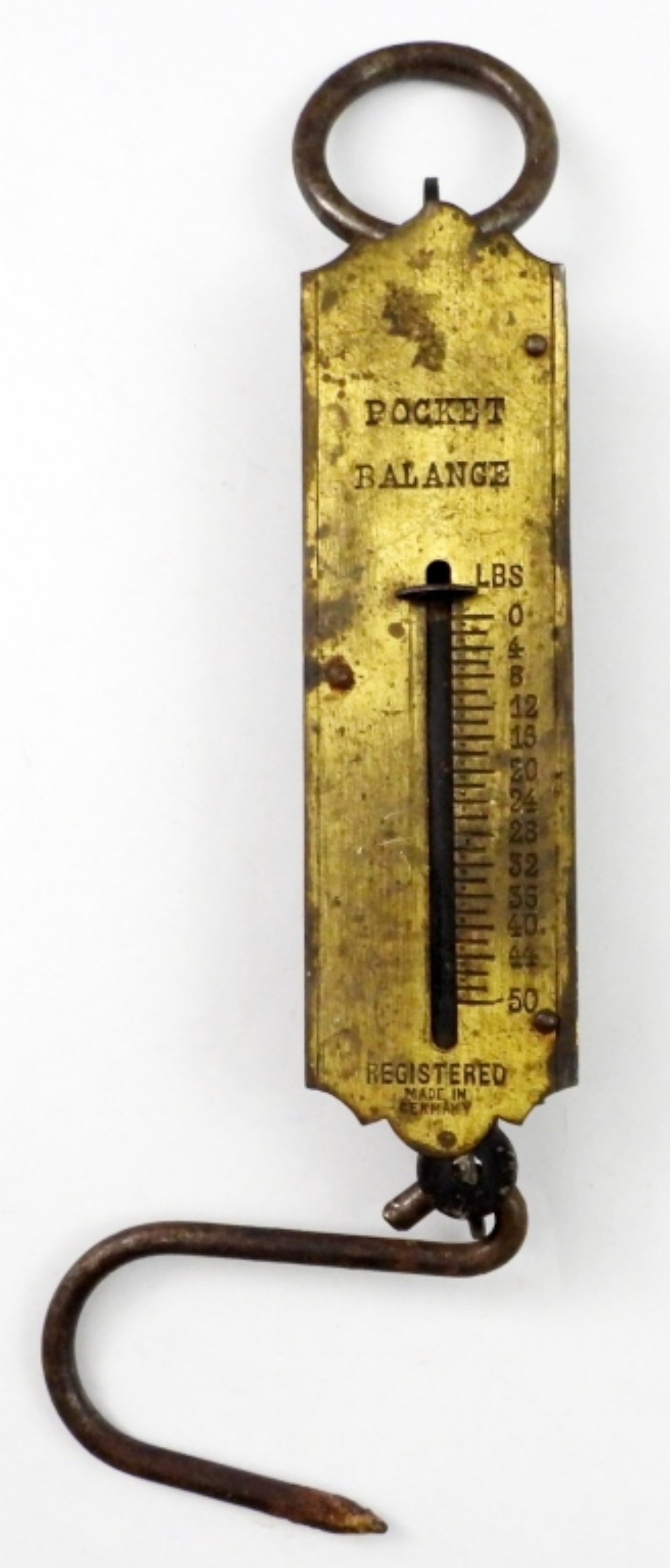 VINTAGE REBURE POCKET BALANCE FISHING SCALE, UP TO 50 LBS. MADE IN GERMANY.