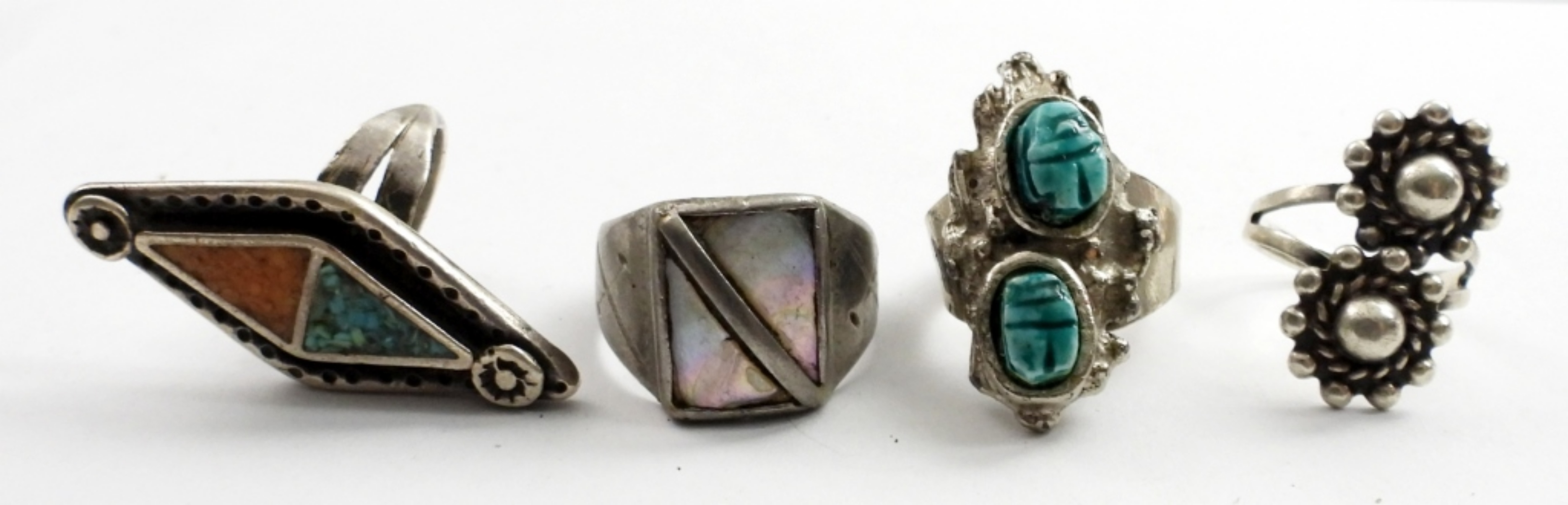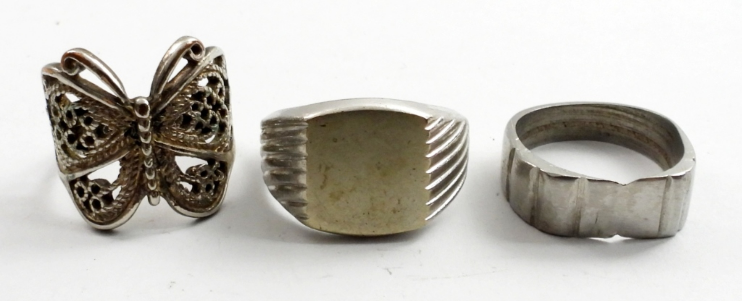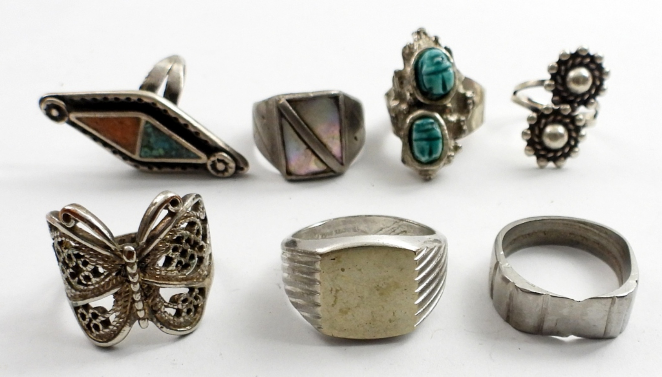 7 SILVER TONE FASHION RINGS.SIZE 5,7,9,10,13
